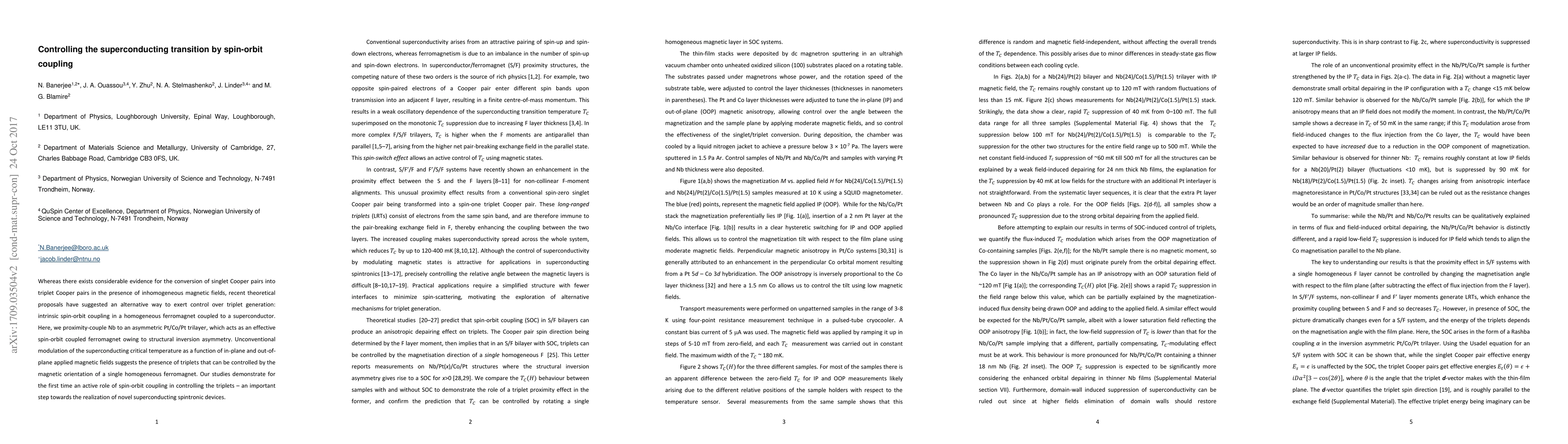 This paper investigates how intrinsic spin-orbit coupling in a ferromagnet can modulate the superconducting critical temperature via the generation of triplet Cooper pairs. By coupling Nb to a Pt/Co/Pt trilayer, the study demonstrates that the orientation of an applied magnetic field can control these triplets, marking a significant advancement for superconducting spintronic applications.