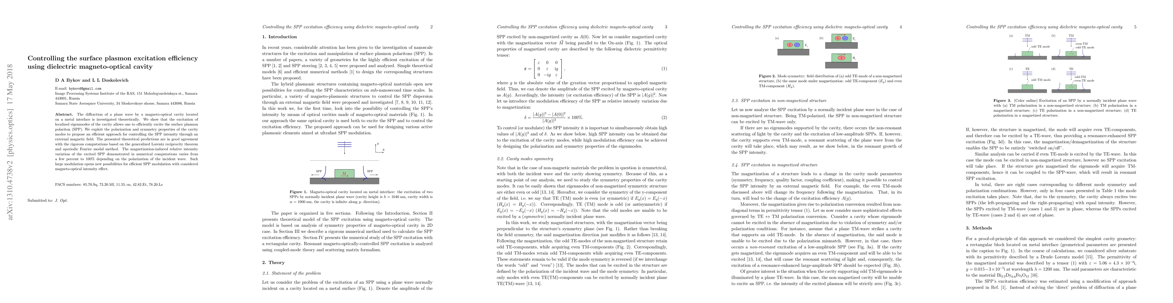 Researchers developed a method to control surface plasmon excitation efficiency using a magneto-optical cavity, allowing for efficient modulation of the intensity through an external magnetic field with significant variations in intensity.