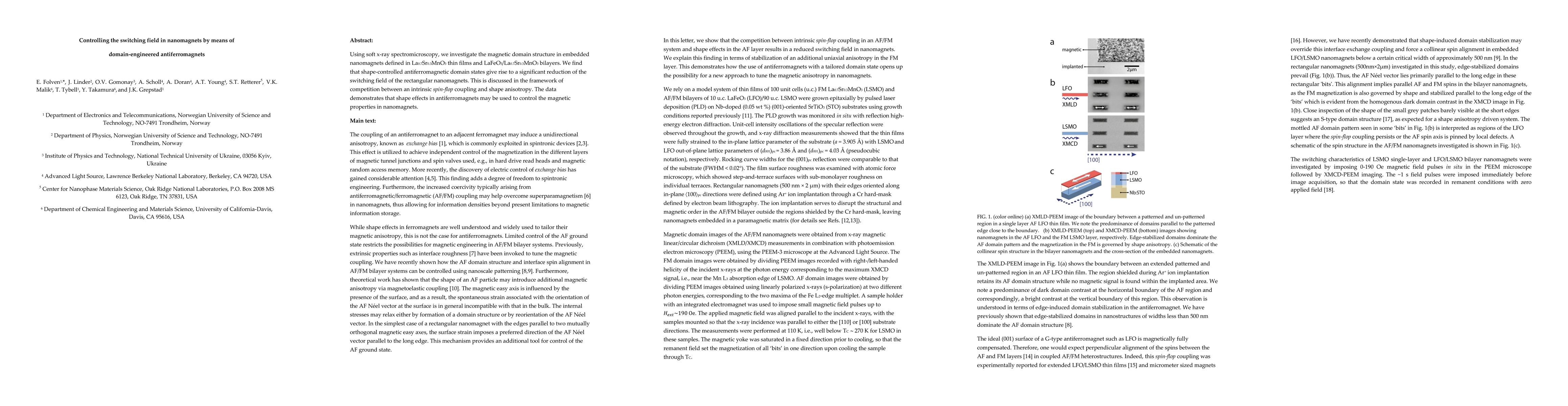 Researchers used soft x-ray spectromicroscopy to investigate nanomagnets, finding that shape-controlled antiferromagnetic domains reduce the switching field of rectangular nanomagnets.