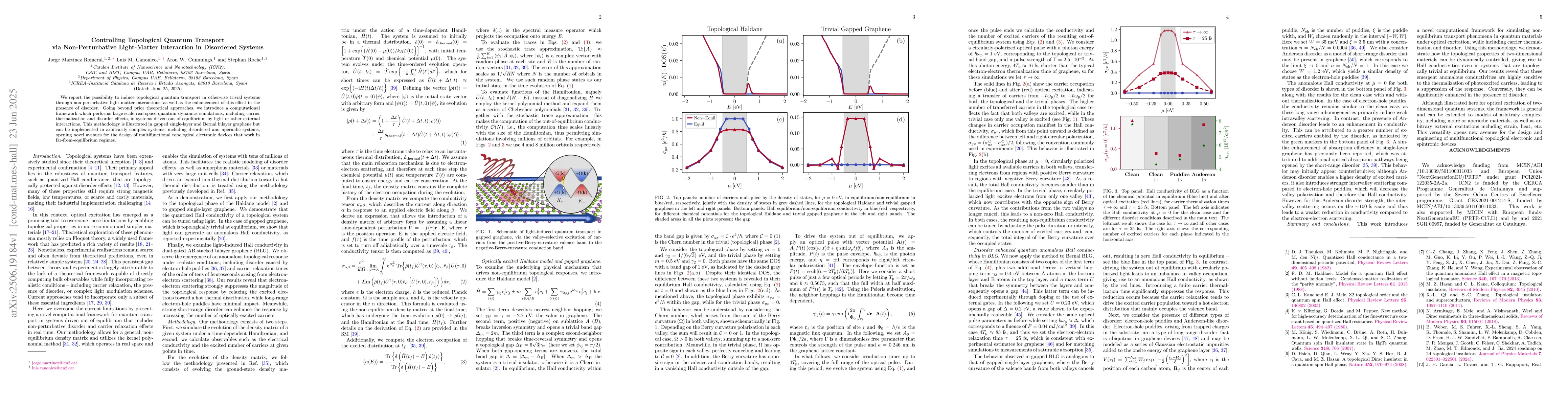 We report the possibility to induce topological quantum transport in otherwise trivial systems through non-perturbative light-matter interactions, as well as the enhancement of this effect in the presence of disorder. Going beyond prior theoretical approaches, we introduce a computational framework which performs large-scale real-space quantum dynamics simulations, including carrier thermalization and disorder effects, in systems driven out of equilibrium by light or other external interactions. This methodology is illustrated in gapped single-layer and Bernal bilayer graphene but can be implemented in arbitrarily complex systems, including disordered and aperiodic systems, opening novel avenues for the design of multifunctional topological electronic devices that work in far-from-equilibrium regimes.