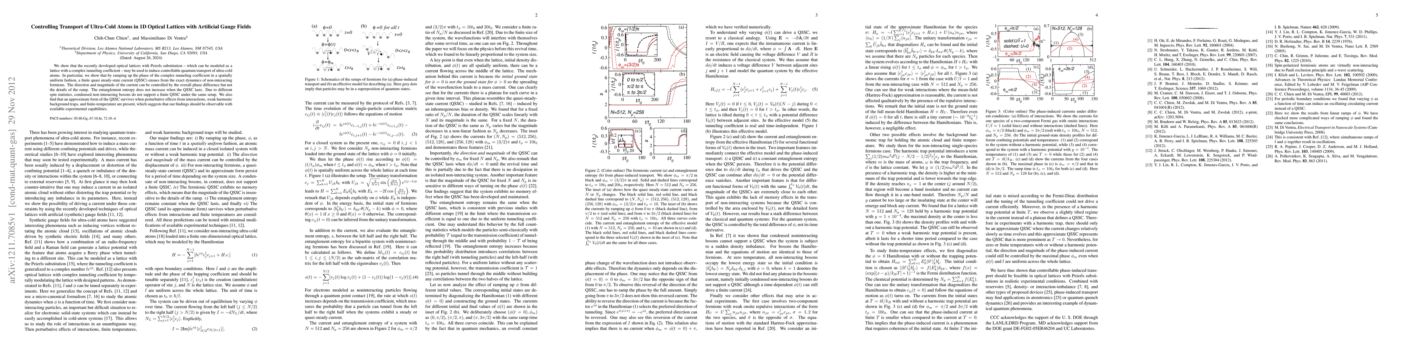 We show that the recently developed optical lattices with Peierls substitution -- which can be modeled as a lattice with a complex tunneling coefficient -- may be used to induce controllable quantum transport of ultra-cold atoms. In particular, we show that by ramping up the phase of the complex tunneling coefficient in a spatially uniform fashion, a finite quasi steady-state current (QSSC) ensues from the exact dynamics of non-interacting fermions. The direction and magnitude of the current can be controlled by the overall phase difference but not the details of the ramp. The entanglement entropy does not increase when the QSSC lasts. Due to different spin statistics, condensed non-interacting bosons do not support a finite QSSC under the same setup. We also find that an approximate form of the QSSC survives when perturbative effects from interactions, weak harmonic background traps, and finite-temperature are present, which suggests that our findings should be observable with available experimental capabilities.