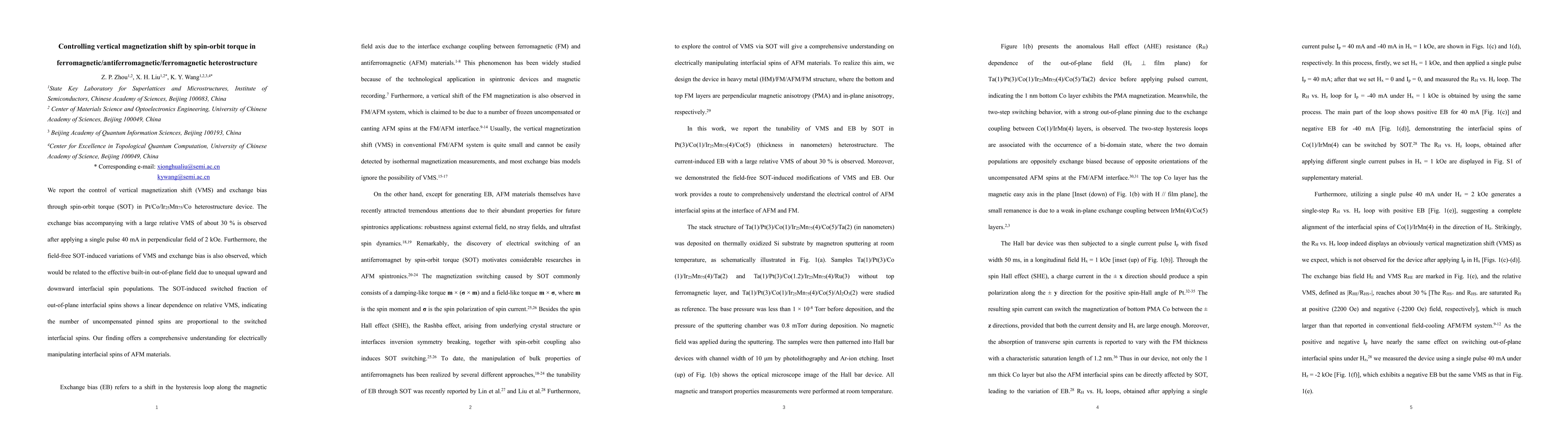 We report the control of vertical magnetization shift (VMS) and exchange bias through spin-orbit torque (SOT) in Pt/Co/Ir25Mn75/Co heterostructure device. The exchange bias accompanying with a large relative VMS of about 30 % is observed after applying a single pulse 40 mA in perpendicular field of 2 kOe. Furthermore, the field-free SOT-induced variations of VMS and exchange bias is also observed, which would be related to the effective built-in out-of-plane field due to unequal upward and downward interfacial spin populations. The SOT-induced switched fraction of out-of-plane interfacial spins shows a linear dependence on relative VMS, indicating the number of uncompensated pinned spins are proportional to the switched interfacial spins. Our finding offers a comprehensive understanding for electrically manipulating interfacial spins of AFM materials.