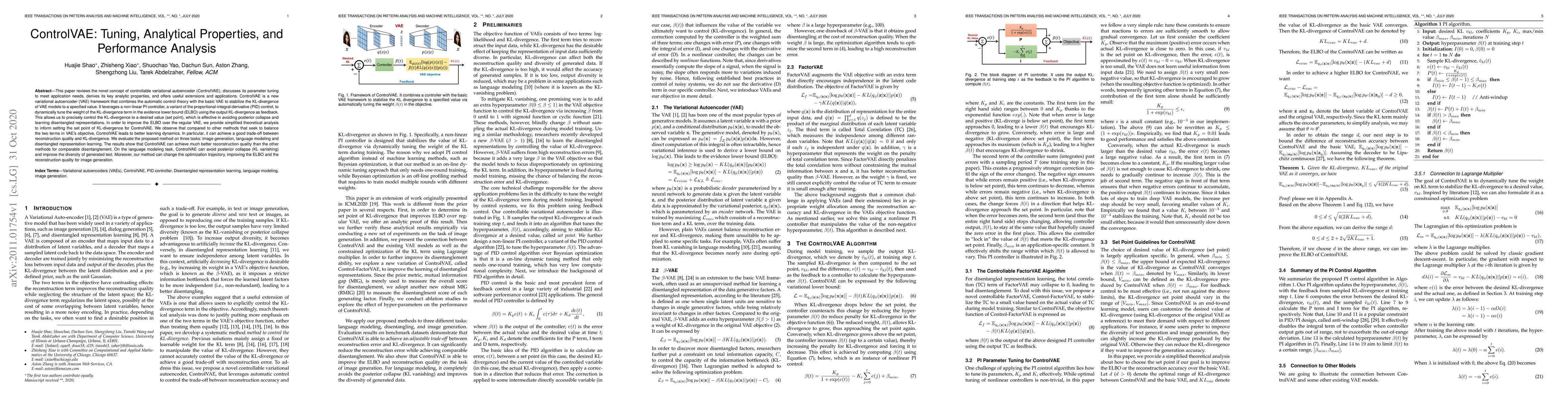 This paper reviews the novel concept of controllable variational autoencoder (ControlVAE), discusses its parameter tuning to meet application needs, derives its key analytic properties, and offers useful extensions and applications. ControlVAE is a new variational autoencoder (VAE) framework that combines the automatic control theory with the basic VAE to stabilize the KL-divergence of VAE models to a specified value. It leverages a non-linear PI controller, a variant of the proportional-integral-derivative (PID) control, to dynamically tune the weight of the KL-divergence term in the evidence lower bound (ELBO) using the output KL-divergence as feedback. This allows us to precisely control the KL-divergence to a desired value (set point), which is effective in avoiding posterior collapse and learning disentangled representations. In order to improve the ELBO over the regular VAE, we provide simplified theoretical analysis to inform setting the set point of KL-divergence for ControlVAE. We observe that compared to other methods that seek to balance the two terms in VAE's objective, ControlVAE leads to better learning dynamics. In particular, it can achieve a good trade-off between reconstruction quality and KL-divergence. We evaluate the proposed method on three tasks: image generation, language modeling and disentangled representation learning. The results show that ControlVAE can achieve much better reconstruction quality than the other methods for comparable disentanglement. On the language modeling task, ControlVAE can avoid posterior collapse (KL vanishing) and improve the diversity of generated text. Moreover, our method can change the optimization trajectory, improving the ELBO and the reconstruction quality for image generation.