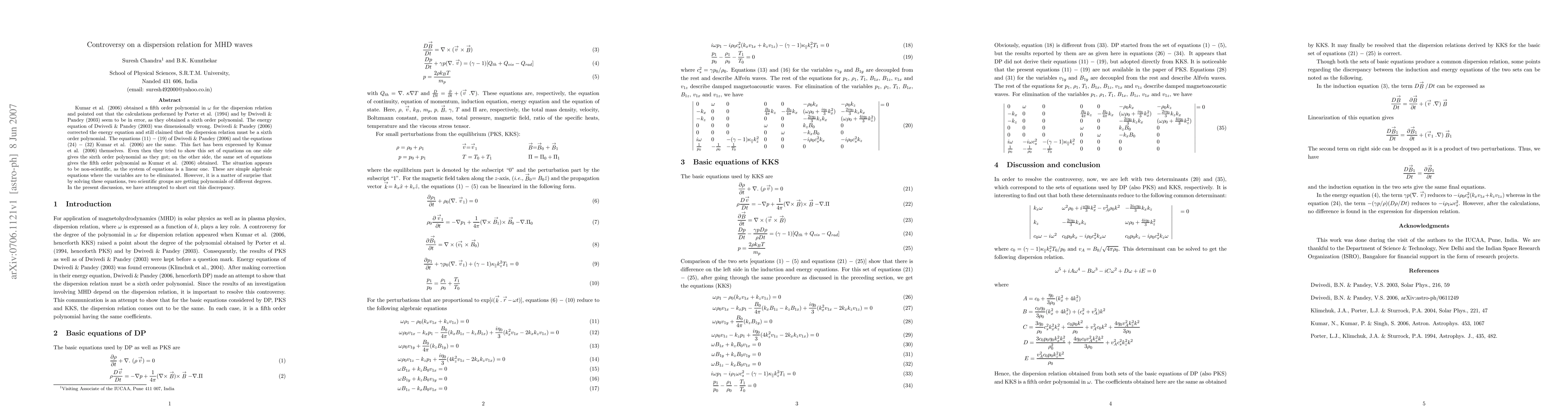 Research paper investigates discrepancy in MHD wave dispersion relation calculations, suggesting a non-scientific issue with the mathematical approach despite linear equations being used.