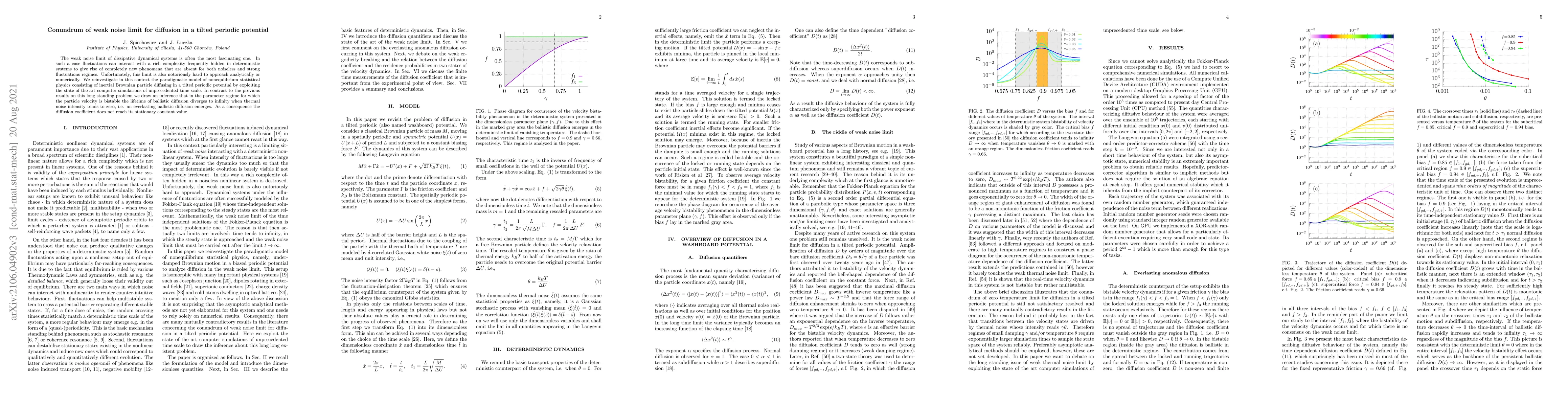 The weak noise limit of dissipative dynamical systems is often the most fascinating one. In such a case fluctuations can interact with a rich complexity frequently hidden in deterministic systems to give rise of completely new phenomena that are absent for both noiseless and strong fluctuations regimes. Unfortunately, this limit is also notoriously hard to approach analytically or numerically. We reinvestigate in this context the paradigmatic model of nonequlibrium statistical physics consisting of inertial Brownian particle diffusing in a tilted periodic potential by exploiting the state of the art computer simulations of unprecedented time scale. In contrast to the previous results on this long standing problem we draw an inference that in the parameter regime for which the particle velocity is bistable the lifetime of ballistic diffusion diverges to infinity when thermal noise intensity tends to zero, i.e. an everlasting ballistic diffusion emerges. As a consequence the diffusion coefficient does not reach its stationary constant value.