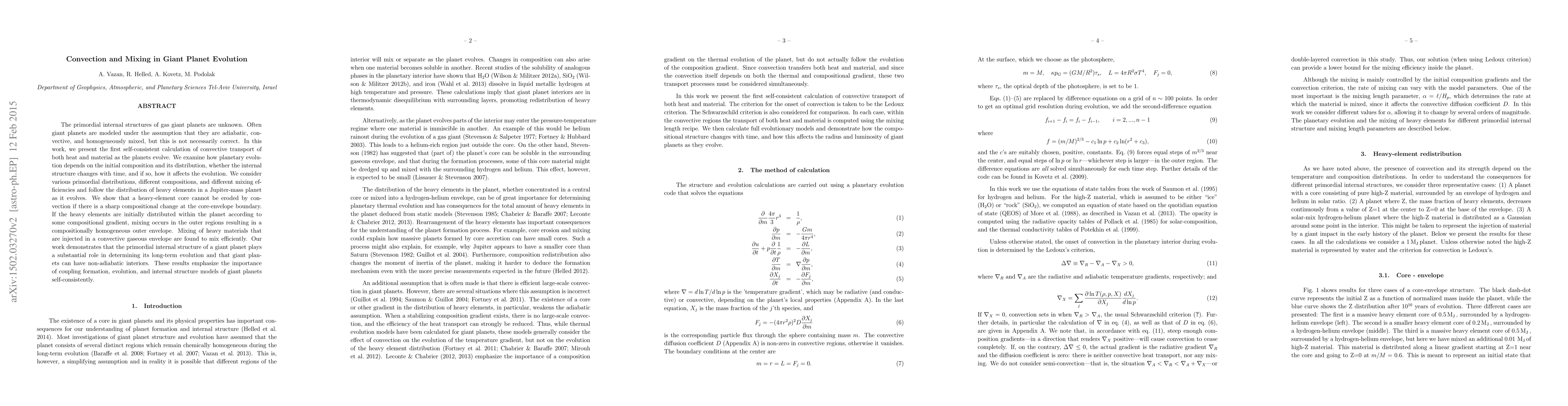 The primordial internal structures of gas giant planets are unknown. Often giant planets are modeled under the assumption that they are adiabatic, convective, and homogeneously mixed, but this is not necessarily correct. In this work, we present the first self-consistent calculation of convective transport of both heat and material as the planets evolve. We examine how planetary evolution depends on the initial composition and its distribution, whether the internal structure changes with time, and if so, how it affects the evolution. We consider various primordial distributions, different compositions, and different mixing efficiencies and follow the distribution of heavy elements in a Jupiter-mass planet as it evolves. We show that a heavy-element core cannot be eroded by convection if there is a sharp compositional change at the core-envelope boundary. If the heavy elements are initially distributed within the planet according to some compositional gradient, mixing occurs in the outer regions resulting in a compositionally homogeneous outer envelope. Mixing of heavy materials that are injected in a convective gaseous envelope are found to mix efficiently. Our work demonstrates that the primordial internal structure of a giant planet plays a substantial role in determining its long-term evolution and that giant planets can have non-adiabatic interiors. These results emphasize the importance of coupling formation, evolution, and internal structure models of giant planets self-consistently.