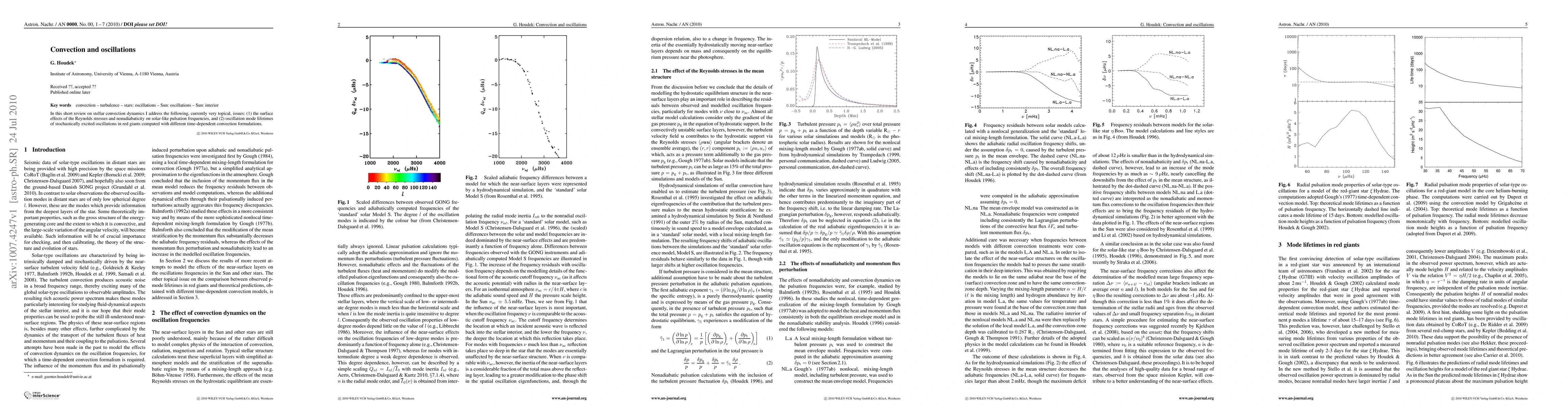 This paper reviews the impact of Reynolds stresses and nonadiabaticity on solar-like pulsation frequencies and examines the lifetimes of oscillation modes in red giants using various time-dependent convection models. The focus is on the dynamics of stellar convection and its effects on stellar oscillations.
