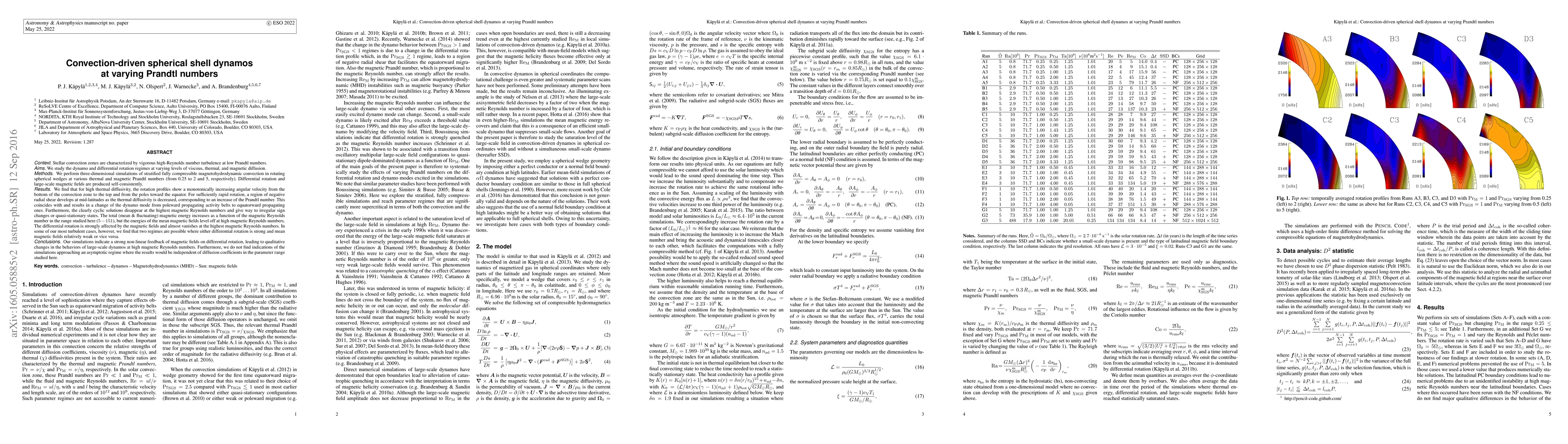 (abidged) Context: Stellar convection zones are characterized by vigorous high-Reynolds number turbulence at low Prandtl numbers. Aims: We study the dynamo and differential rotation regimes at varying levels of viscous, thermal, and magnetic diffusion. Methods: We perform three-dimensional simulations of stratified fully compressible magnetohydrodynamic convection in rotating spherical wedges at various thermal and magnetic Prandtl numbers (from 0.25 to 2 and 5, respectively). Results: We find that the rotation profiles for high thermal diffusivity show a monotonically increasing angular velocity from the bottom of the convection zone to the top and from the poles toward the equator. For sufficiently rapid rotation, a region of negative radial shear develops at mid-latitudes as the thermal diffusivity is decreased. This coincides with a change in the dynamo mode from poleward propagating activity belts to equatorward propagating ones. Furthermore, the cyclic solutions disappear at the highest magnetic Reynolds numbers. The total magnetic energy increases with the magnetic Reynolds number in the range studied here ($5-151$), but the energies of the mean magnetic fields level off at high magnetic Reynolds numbers. The differential rotation is strongly affected by the magnetic fields and almost vanishes at the highest magnetic Reynolds numbers. In some of our most turbulent cases we find that two regimes are possible where either differential rotation is strong and mean magnetic fields relatively weak or vice versa. Conclusions: Our simulations indicate a strong non-linear feedback of magnetic fields on differential rotation, leading to qualitative changes in the behaviors of large-scale dynamos at high magnetic Reynolds numbers. Furthermore, we do not find indications of the simulations approaching an asymptotic regime where the results would be independent of diffusion coefficients.