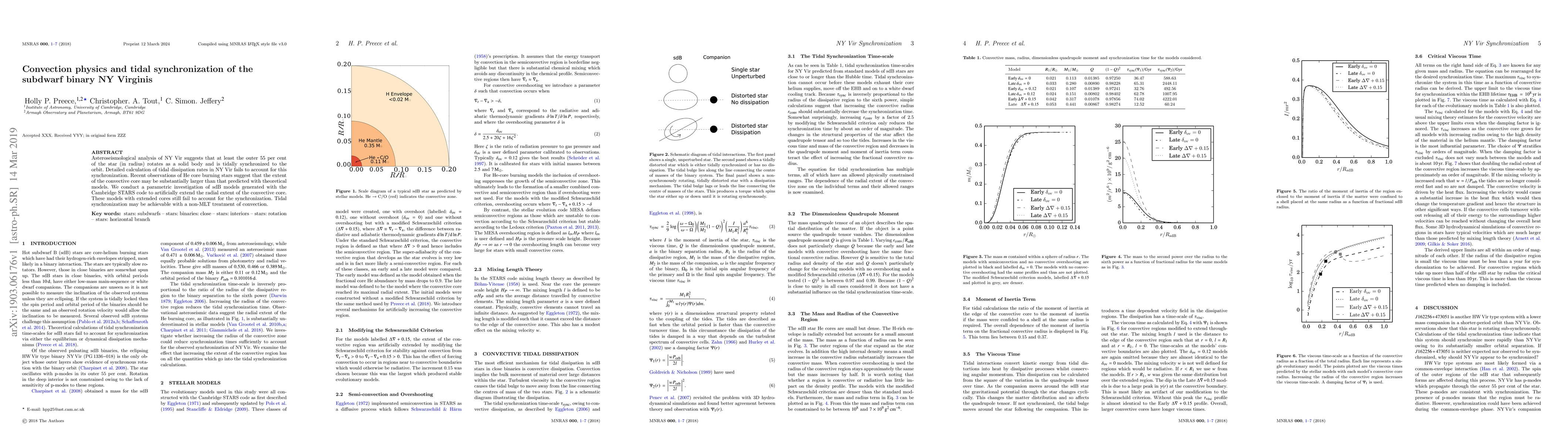 Asteroseismological analysis of NY Vir suggests that at least the outer 55 per cent of the star (in radius) rotates as a solid body and is tidally synchronized to the orbit. Detailed calculation of tidal dissipation rates in NY Vir fails to account for this synchronization. Recent observations of He core burning stars suggest that the extent of the convective core may be substantially larger than that predicted with theoretical models. We conduct a parametric investigation of sdB models generated with the Cambridge STARS code to artificially extend the radial extent of the convective core. These models with extended cores still fail to account for the synchronization. Tidal synchronization may be achievable with a non-MLT treatment of convection.