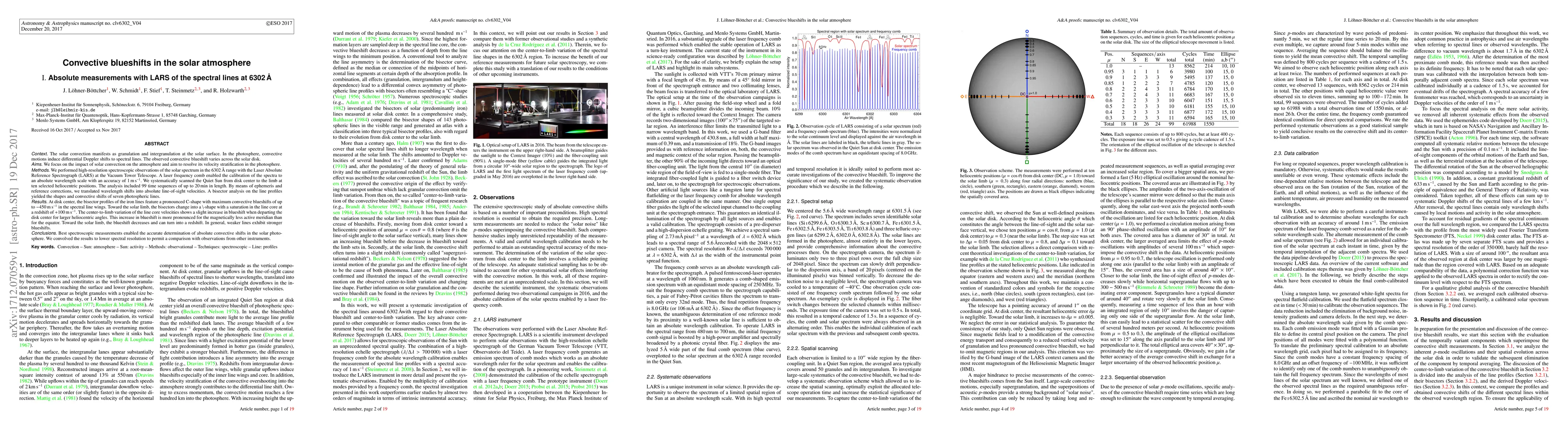 This study investigates the convective blueshifts in the solar atmosphere using high-resolution spectroscopy in the 6302 Å range with LARS. The research reveals significant center-to-limb variations in the convective blueshifts, with maximum blueshifts of up to -450 m s⁻¹ at disk center, transitioning to redshifts towards the limb.