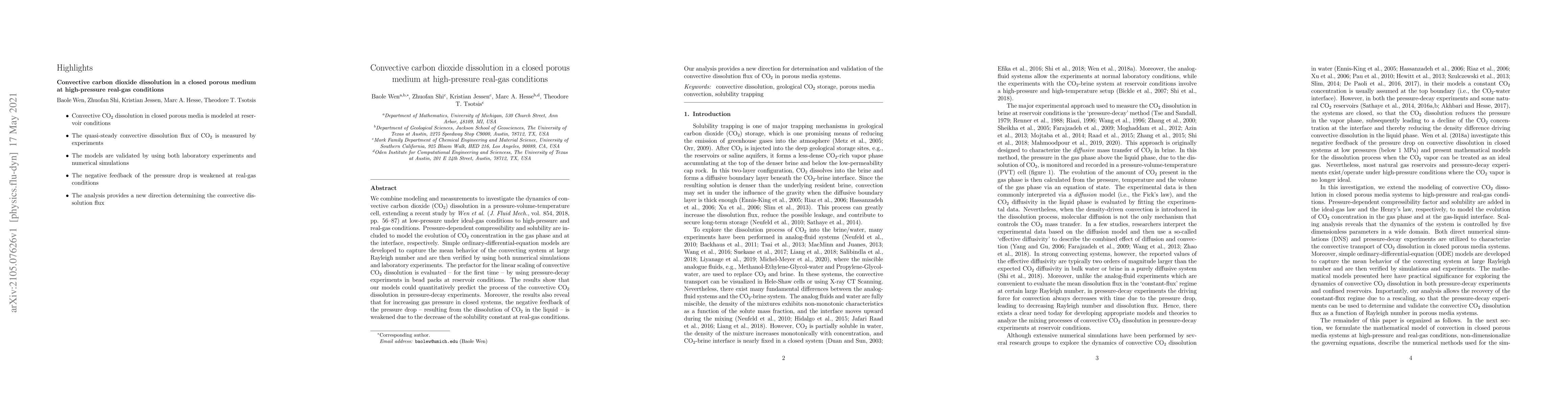 We combine modeling and measurements to investigate the dynamics of convective carbon dioxide (CO$_2$) dissolution in a pressure-volume-temperature cell, extending a recent study by Wen et al. (J. Fluid Mech., vol. 854, 2018, pp. 56--87) at low-pressure under ideal-gas conditions to high-pressure and real-gas conditions. Pressure-dependent compressibility and solubility are included to model the evolution of CO$_2$ concentration in the gas phase and at the interface, respectively. Simple ordinary-differential-equation models are developed to capture the mean behavior of the convecting system at large Rayleigh number and are then verified by using both numerical simulations and laboratory experiments. The prefactor for the linear scaling of convective CO$_2$ dissolution is evaluated -- for the first time -- by using pressure-decay experiments in bead packs at reservoir conditions. The results show that our models could quantitatively predict the process of the convective CO$_2$ dissolution in pressure-decay experiments. Moreover, the results also reveal that for increasing gas pressure in closed systems, the negative feedback of the pressure drop -- resulting from the dissolution of CO$_2$ in the liquid -- is weakened due to the decrease of the solubility constant at real-gas conditions. Our analysis provides a new direction for determination and validation of the convective dissolution flux of CO$_2$ in porous media systems.