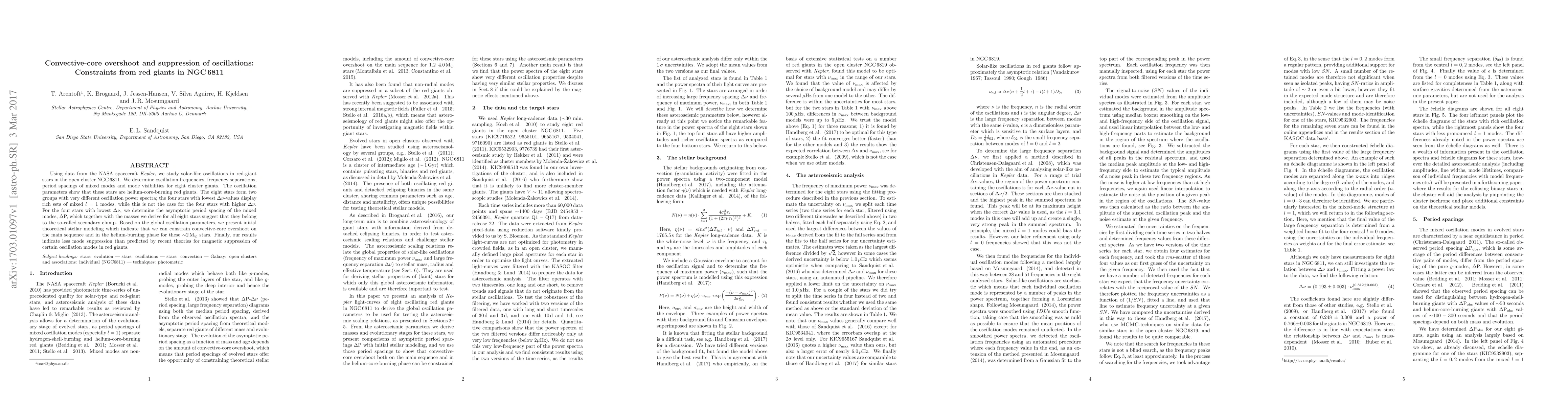This study uses Kepler spacecraft data to analyze solar-like oscillations in red giants of NGC6811, revealing two groups with distinct oscillation power spectra. Theoretical modeling suggests constraints on convective-core overshoot and indicates less suppression of oscillation modes than recent magnetic suppression theories predict.