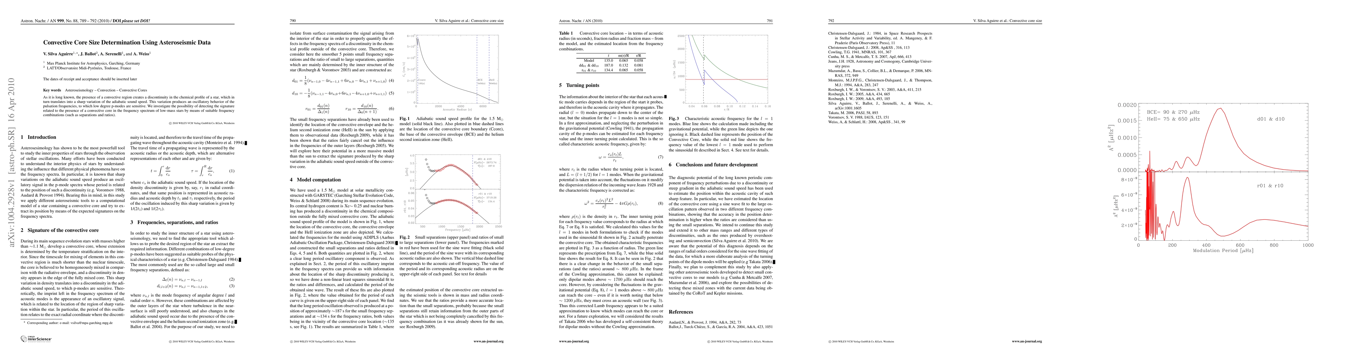 As it is long known, the presence of a convective region creates a discontinuity in the chemical profile of a star, which in turn translates into a sharp variation of the adiabatic sound speed. This variation produces an oscillatory behavior of the pulsation frequencies, to which low degree p-modes are sensitive. We investigate the possibility of detecting the signature related to the presence of a convective core in the frequency spectrum of low-mass stars by means of suitable frequency combinations (such as separations and ratios)