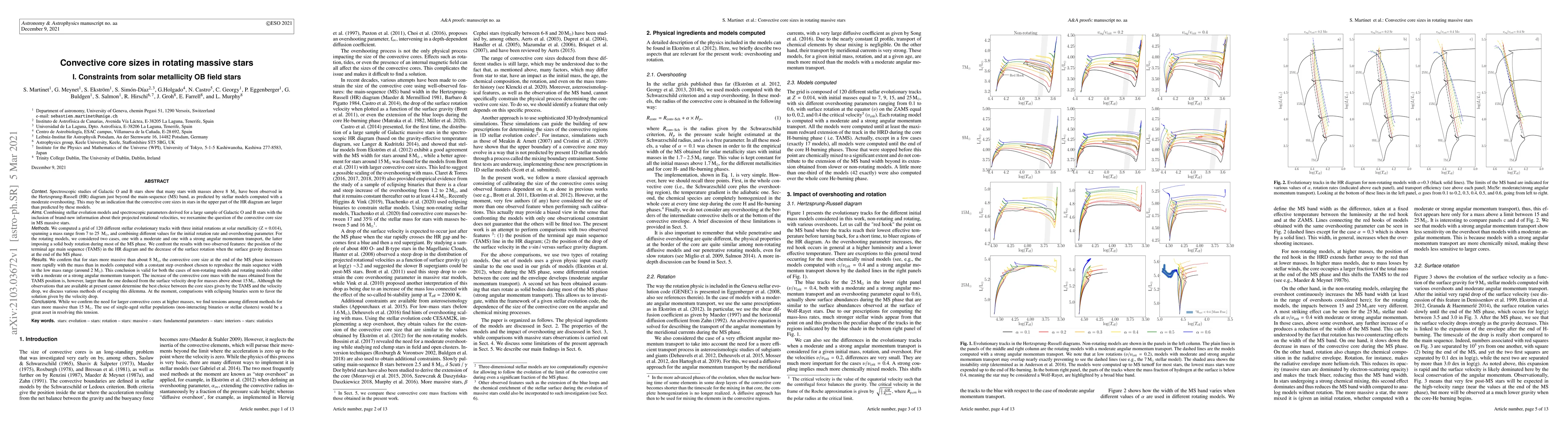 This paper investigates the convective core sizes in massive rotating stars, finding that stars more massive than 8 M$_{\odot}$ exhibit larger convective cores than predicted by standard models. It concludes that while larger cores are needed for higher masses, discrepancies arise in determining the exact core size for stars above 15 M$_{\odot}$, suggesting the need for further studies using single-aged stellar populations.