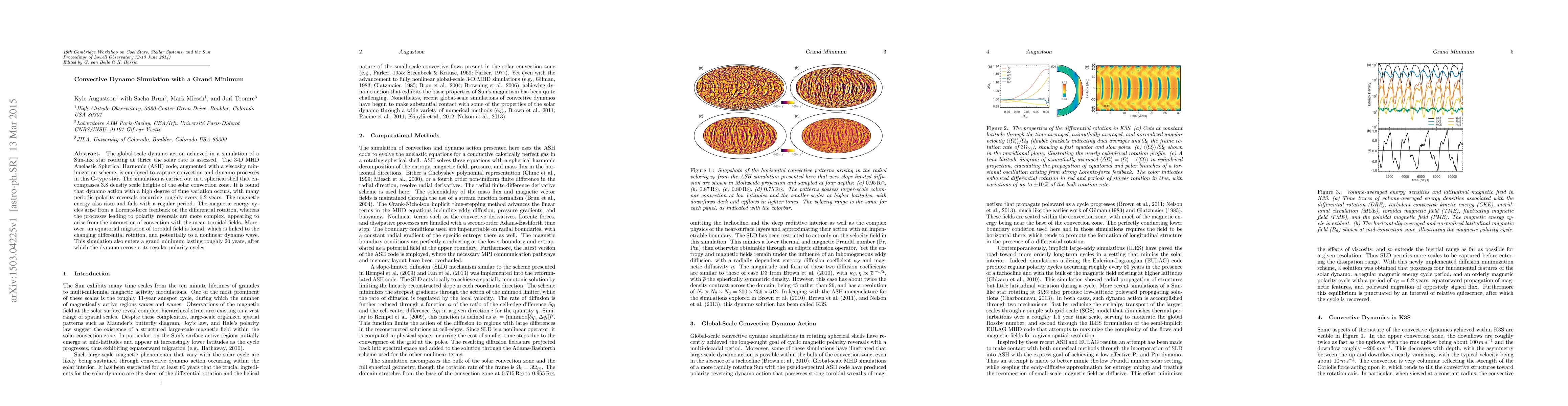 The research employs a 3-D MHD Anelastic Spherical Harmonic (ASH) code, augmented with a viscosity minimization scheme, to simulate a Sun-like star rotating thrice as fast as the Sun, capturing convection and dynamo processes in a spherical shell encompassing 3.8 density scale heights of the solar convection zone.