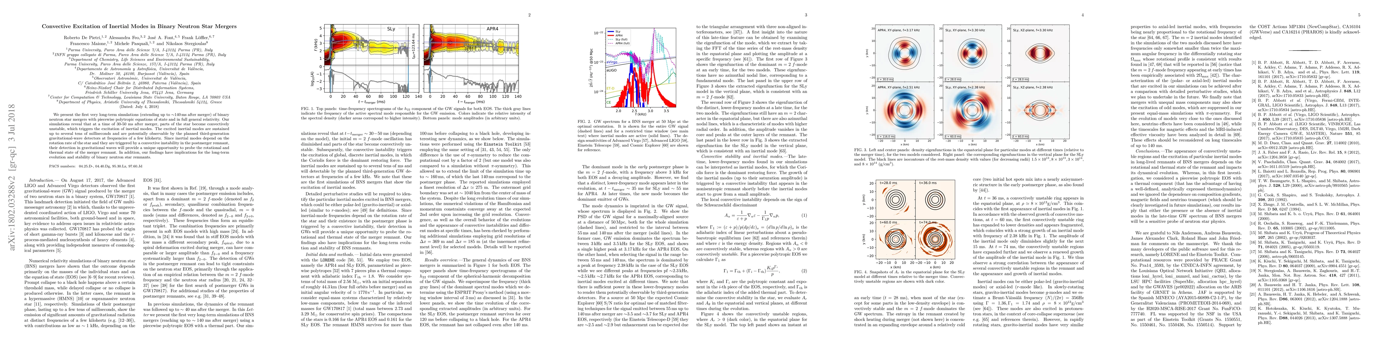 This paper presents long-term simulations of binary neutron star mergers, revealing that convective instability at 30-50 ms post-merger excites inertial modes sustained for tens of milliseconds, potentially detectable by future gravitational-wave detectors. These modes offer insights into the remnant's rotational and thermal state.