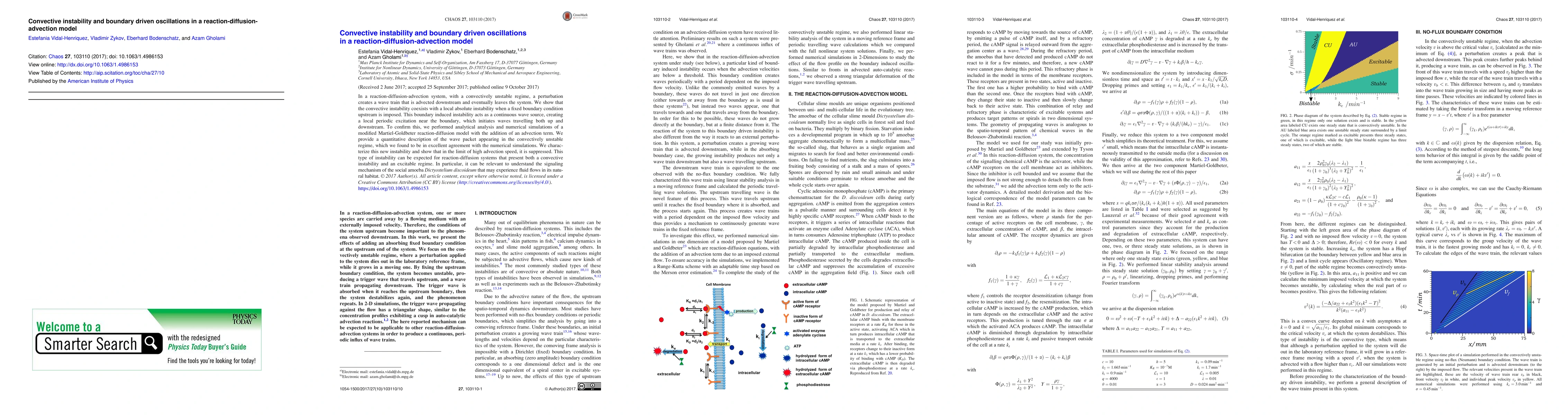 This paper investigates a reaction-diffusion-advection model under convective instability, revealing a local absolute instability induced by upstream boundary conditions. The study combines analytical and numerical methods to demonstrate a new boundary-driven oscillatory behavior, relevant for understanding signaling mechanisms in Dictyostelium discoideum.