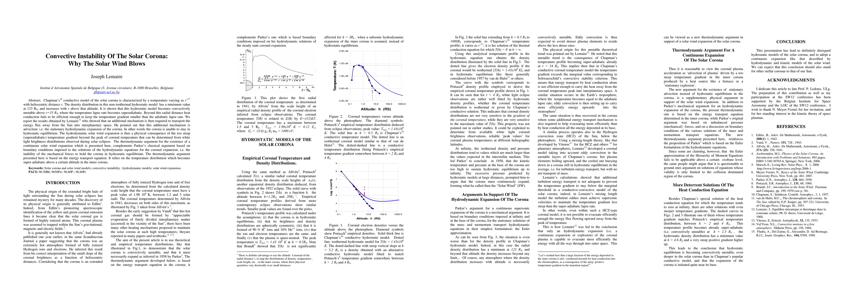 This paper demonstrates that Chapman's conductive model of the solar corona becomes convectively unstable beyond 35 RS, necessitating an additional energy transport mechanism. Lemaire's findings suggest that advection through the hydrodynamic solar wind expansion is required to overcome the superadiabatic temperature gradient, thus explaining the continuous solar wind.