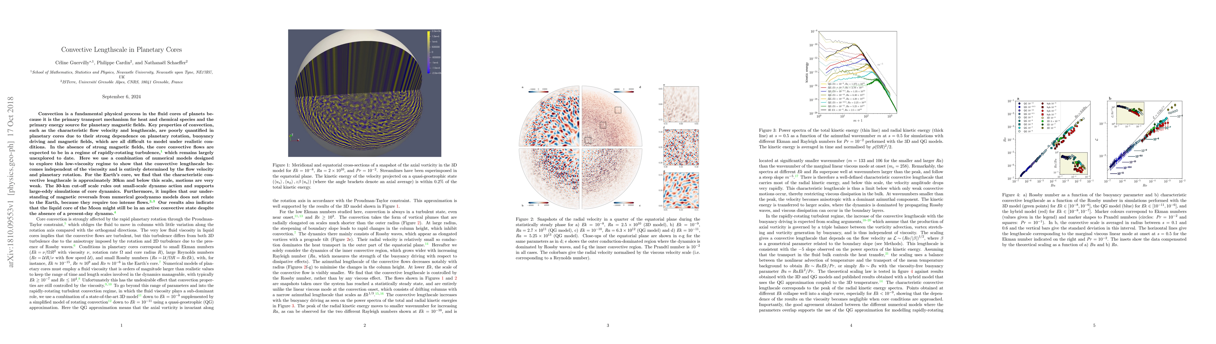 This study reveals that the convective lengthscale in planetary cores, primarily driven by heat and chemical transport, is determined by flow velocity and planetary rotation rather than viscosity. For Earth's core, the characteristic convective lengthscale is approximately 30 km, suggesting weak motions below this scale and implications for magnetic reversals and core dynamics.