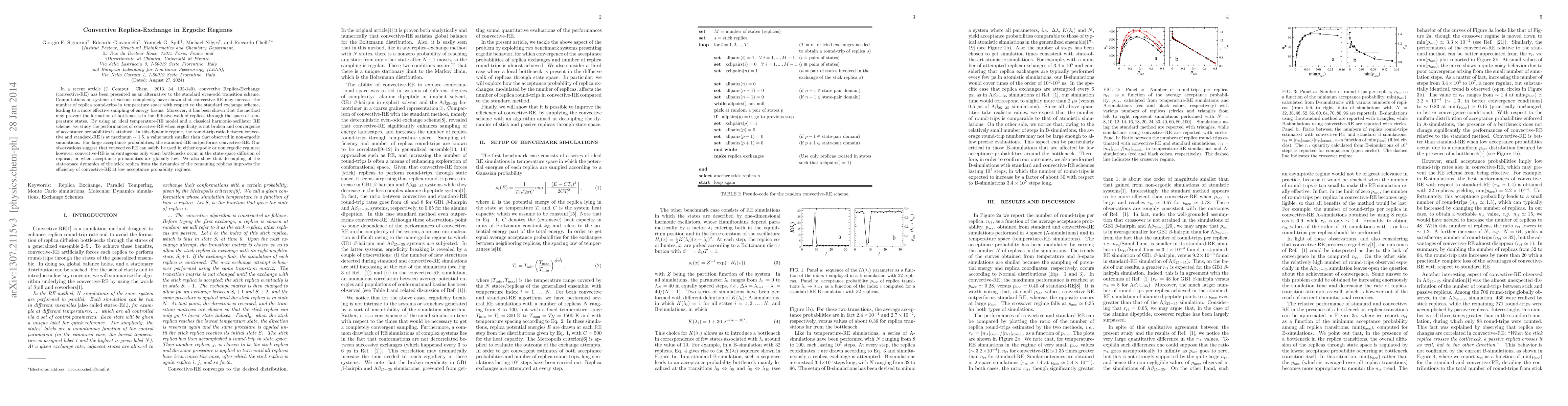 In a recent article (J. Comput. Chem. 2013, 34, 132-140), convective Replica-Exchange (convective-RE) has been presented as an alternative to the standard even-odd transition scheme. Computations on systems of various complexity have shown that convective-RE may increase the number of replica round-trips in temperature space with respect to the standard exchange scheme, leading to a more effective sampling of energy basins. Moreover, it has been shown that the method may prevent the formation of bottlenecks in the diffusive walk of replicas through the space of temperature states. By using an ideal temperature-RE model and a classical harmonic-oscillator RE scheme, we study the performances of convective-RE when ergodicity is not broken and convergence of acceptance probabilities is attained. In this dynamic regime, the round-trip ratio between convective and standard-RE is at maximum ~1.5, a value much smaller than that observed in non-ergodic simulations. For large acceptance probabilities, the standard-RE outperforms convective-RE. Our observations suggest that convective-RE can safely be used in either ergodic or non ergodic regimes; however, convective-RE is advantageous only when bottlenecks occur in the state-space diffusion of replicas, or when acceptance probabilities are globally low. We also show that decoupling of the state-space dynamics of the stick replica from the dynamics of the remaining replicas improves the efficiency of convective-RE at low acceptance probability regimes.