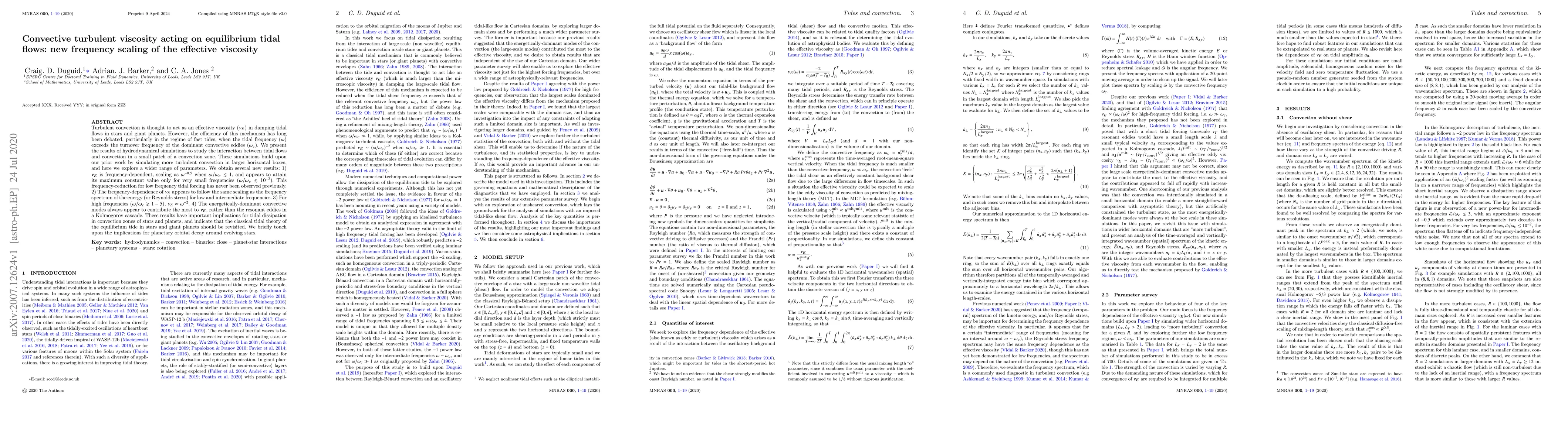 Research finds that convective turbulent viscosity in stars and planets dampens tidal flows with a frequency-dependent effective viscosity, scaling as $ u_E imes rac{1}{ u^{-0.5}}$ at low frequencies.