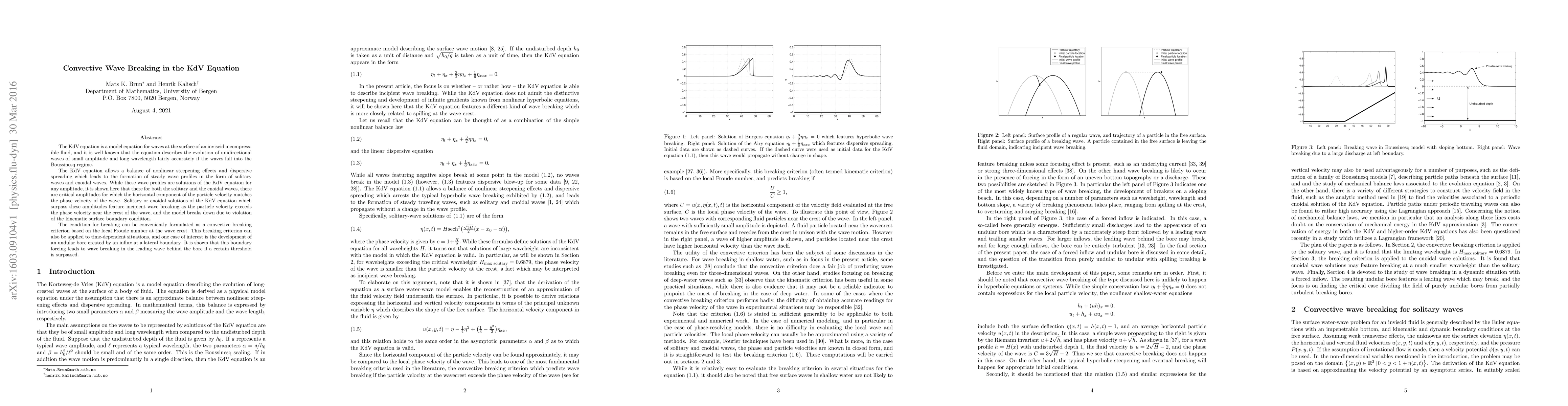 Research investigates wave breaking in the KdV equation, a model for fluid waves, finding critical amplitudes where particle velocity exceeds phase velocity, leading to breakage and breakdown of the model.