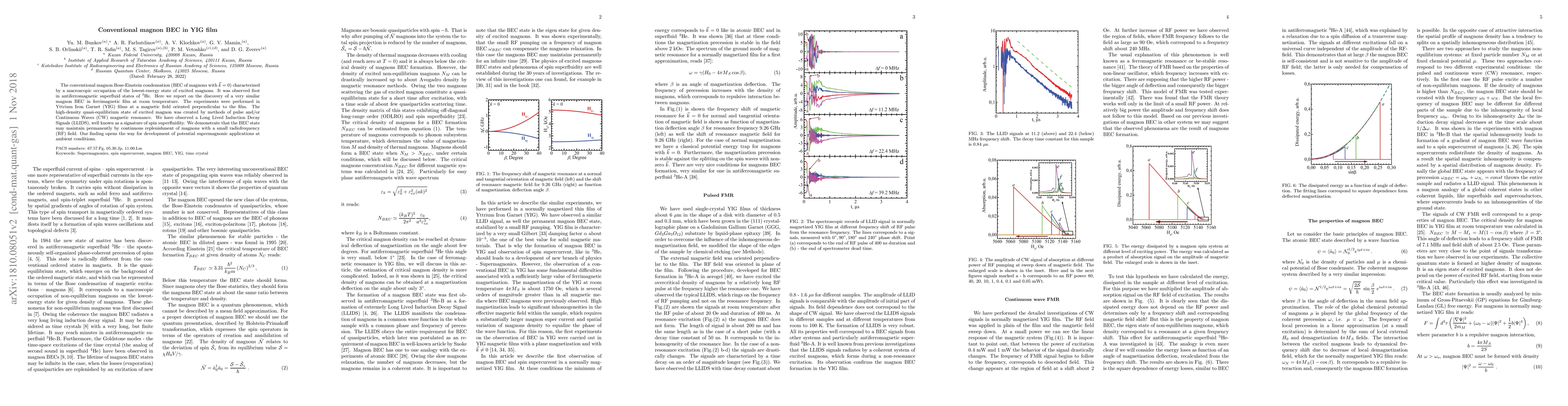 This paper reports the discovery of a conventional magnon Bose-Einstein condensation (BEC) in Yttrium Iron Garnet (YIG) films at room temperature, achieved through pulse and continuous wave magnetic resonance. The study observes long-lived induction decay signals, indicating spin superfluidity, and suggests potential supermagnonic applications at ambient conditions.