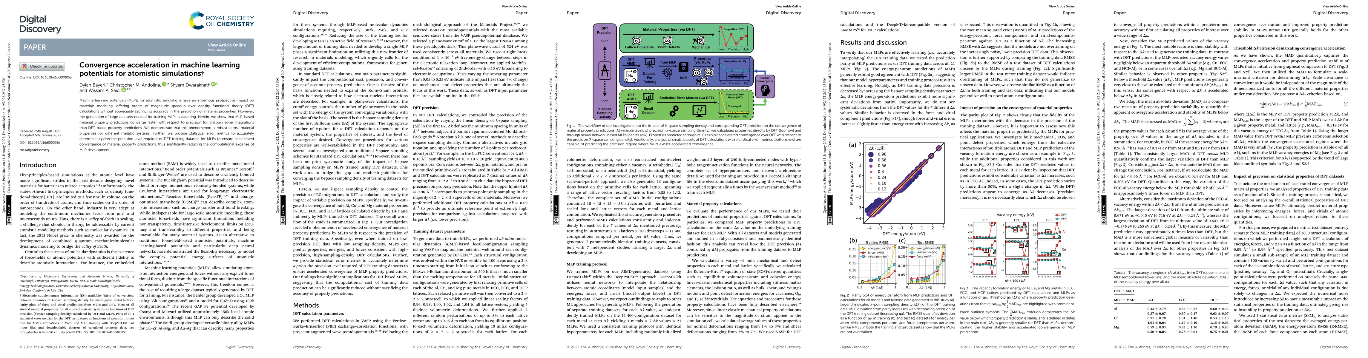 This paper demonstrates that machine learning potentials (MLPs) converge faster than density functional theory (DFT) for predicting material properties in atomistic simulations, offering significant computational savings. It provides statistical metrics to determine the required precision of DFT training datasets for MLPs, ensuring accelerated convergence and reducing the overall computational expense.