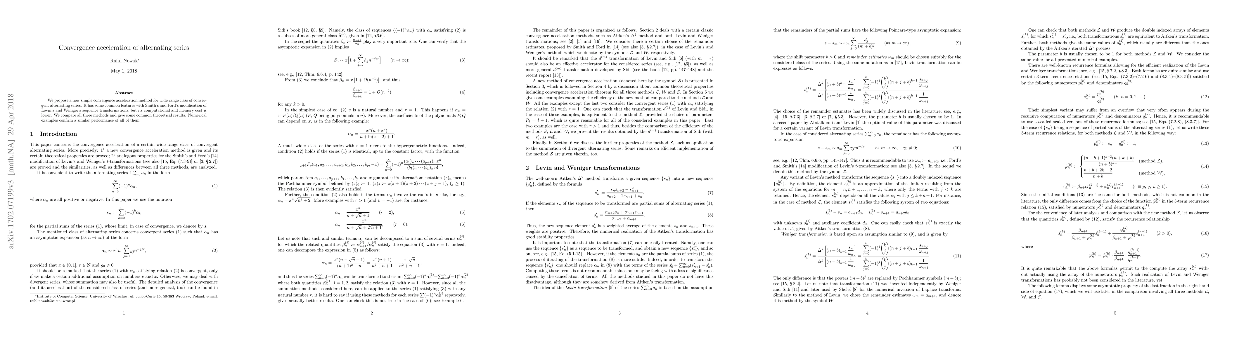 This paper introduces a novel, efficient method for speeding up the convergence of alternating series, outperforming Smith's and Ford's modifications in terms of computational and memory costs. Numerical examples validate its effectiveness, comparable to other methods in theory.