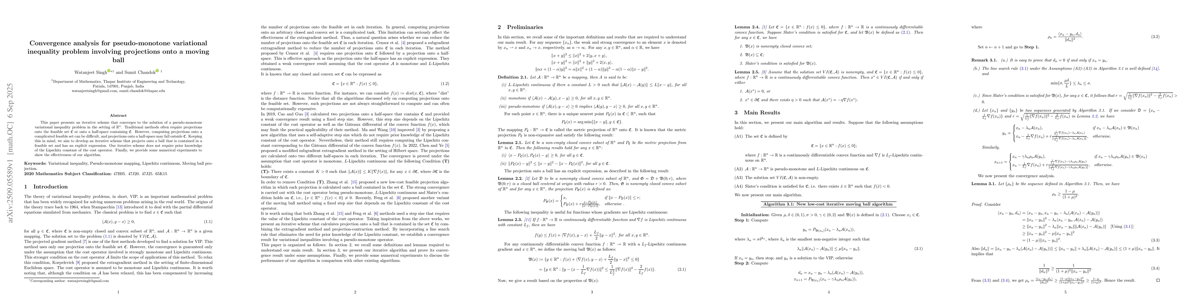 This paper presents an iterative scheme that converges to the solution of a pseudo-monotone variational inequality problem in the setting of $\mathbb{R}^{n}$. Traditional methods often require projections onto the feasible set $\mathfrak{C}$ or onto a half-space containing $\mathfrak{C}$. However, computing projections onto a complicated feasible set can be difficult, and projections onto a half-space may fall outside $\mathfrak{C}$. Keeping this in mind, we aim to develop an iterative scheme that projects onto a ball that is contained in a feasible set and has an explicit expression. Our iterative scheme does not require prior knowledge of the Lipschitz constant of the cost operator. Finally, we provide some numerical experiments to show the effectiveness of our algorithm.