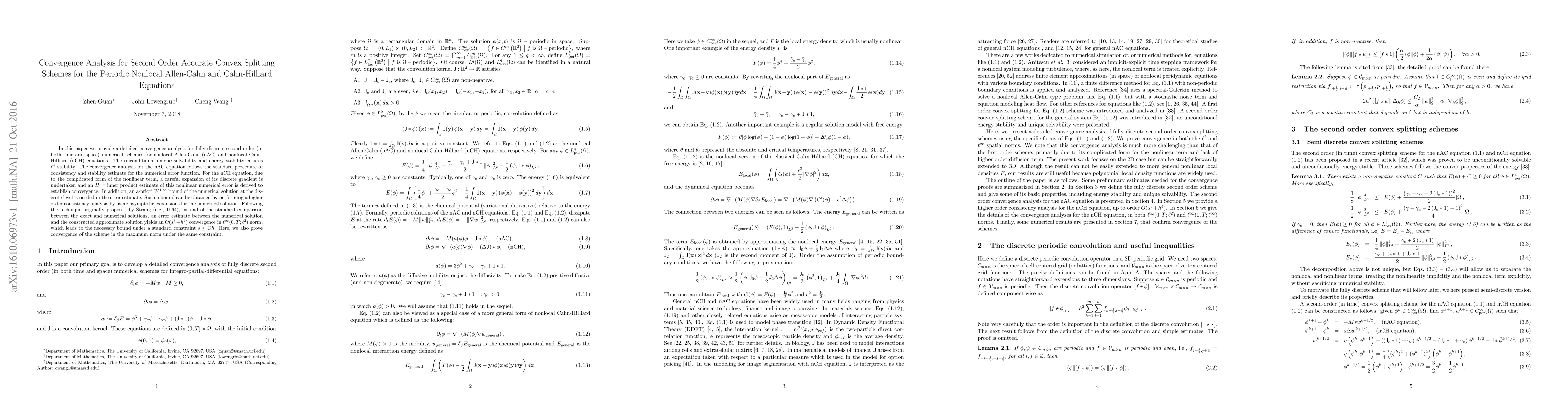 This paper conducts a convergence analysis for second-order accurate numerical schemes for periodic nonlocal Allen-Cahn and Cahn-Hilliard equations, ensuring $\ell^4$ stability. It establishes $O(s^3 + h^4)$ convergence in $\ell^\infty$ norm through a detailed error estimate and higher-order consistency analysis.