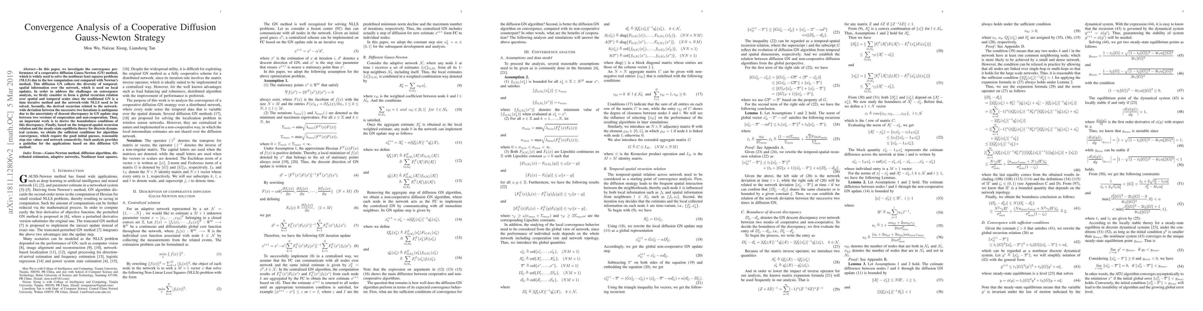 In this paper, we investigate the convergence performance of a cooperative diffusion Gauss-Newton (GN) method, which is widely used to solve the nonlinear least squares problems (NLLS) due to the low computation cost compared with Newton's method. This diffusion GN collects the diversity of temporalspatial information over the network, which is used on local updates. In order to address the challenges on convergence analysis, we firstly consider to form a global recursion relation over spatial and temporal scales since the traditional GN is a time iterative method and the network-wide NLLS need to be solved. Secondly, the derived recursion related to the networkwide deviation between the successive two iterations is ambiguous due to the uncertainty of descent discrepancy in GN update step between two versions of cooperation and non-cooperation. Thus, an important work is to derive the boundedness conditions of this discrepancy. Finally, based on the temporal-spatial recursion relation and the steady-state equilibria theory for discrete dynamical systems, we obtain the sufficient conditions for algorithm convergence, which require the good initial guesses, reasonable step size values and network connectivity. Such analysis provides a guideline for the applications based on this diffusion GN method.