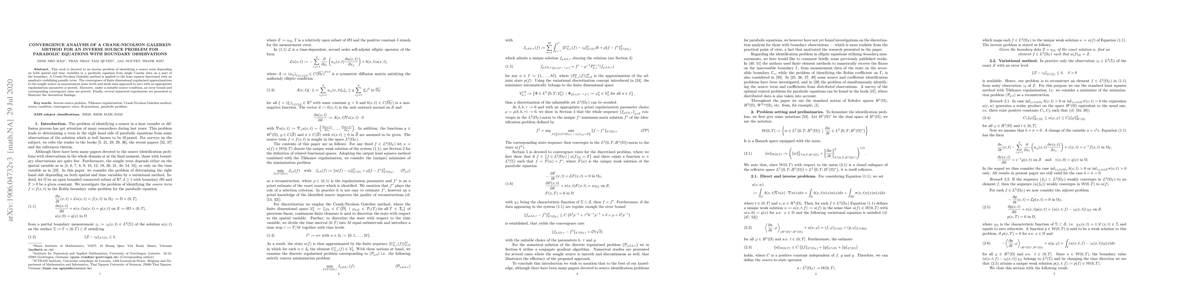 This work is devoted to an inverse problem of identifying a source term depending on both spatial and time variables in a parabolic equation from single Cauchy data on a part of the boundary. A Crank-Nicolson Galerkin method is applied to the least squares functional with an quadratic stabilizing penalty term. The convergence of finite dimensional regularized approximations to the sought source as measurement noise levels and mesh sizes approach to zero with an appropriate regularization parameter is proved. Moreover, under a suitable source condition, an error bound and corresponding convergence rates are proved. Finally, several numerical experiments are presented to illustrate the theoretical findings.