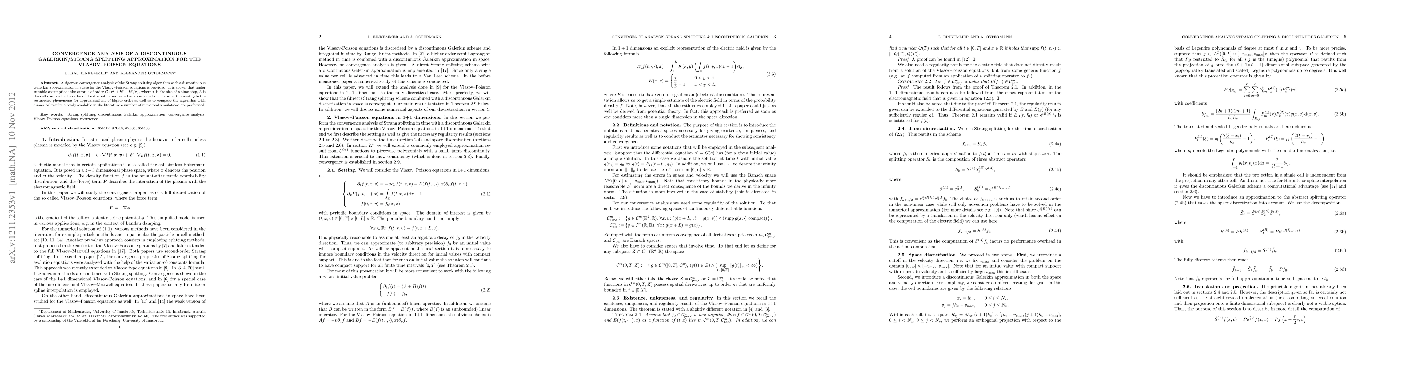 A study on a numerical method for solving Vlasov-Poisson equations shows that its error is of order O(\tau^2 + h^q + h^q / \tau), where \tau is the time step size and h is the cell size. The analysis provides insights into the algorithm's convergence behavior.