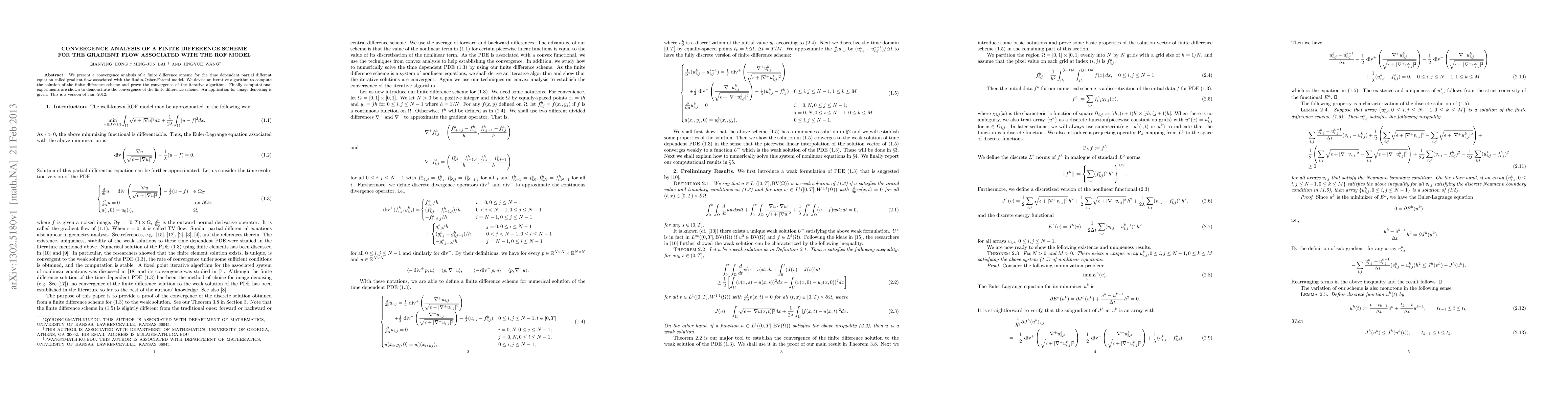 We present a convergence analysis of a finite difference scheme for the time dependent partial different equation called gradient flow associated with the Rudin-Osher-Fatemi model. We devise an iterative algorithm to compute the solution of the finite difference scheme and prove the convergence of the iterative algorithm. Finally computational experiments are shown to demonstrate the convergence of the finite difference scheme. An application for image denoising is given.