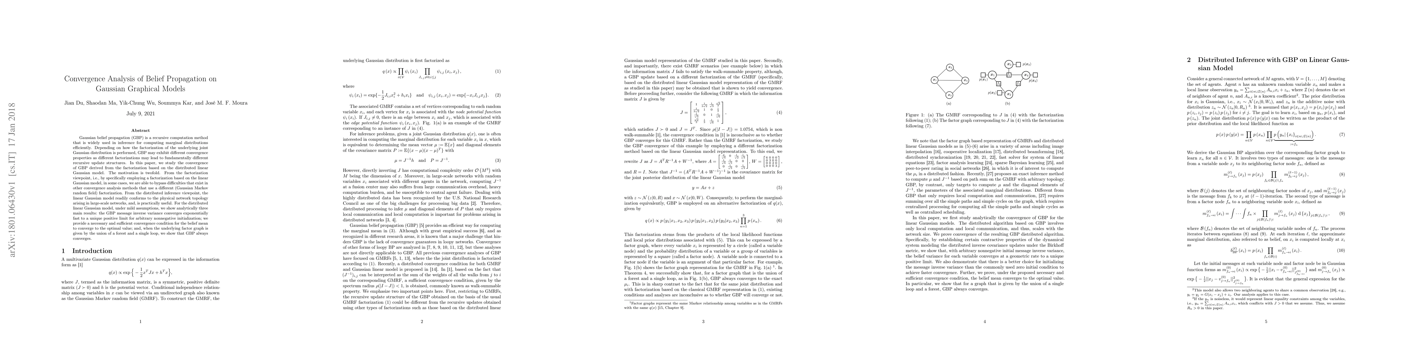 This paper analyzes the convergence properties of Gaussian belief propagation (GBP) derived from a distributed linear Gaussian model. It demonstrates that GBP converges exponentially fast under mild assumptions, provides a necessary and sufficient condition for belief mean convergence, and shows that GBP always converges when the factor graph is a forest with a single loop.