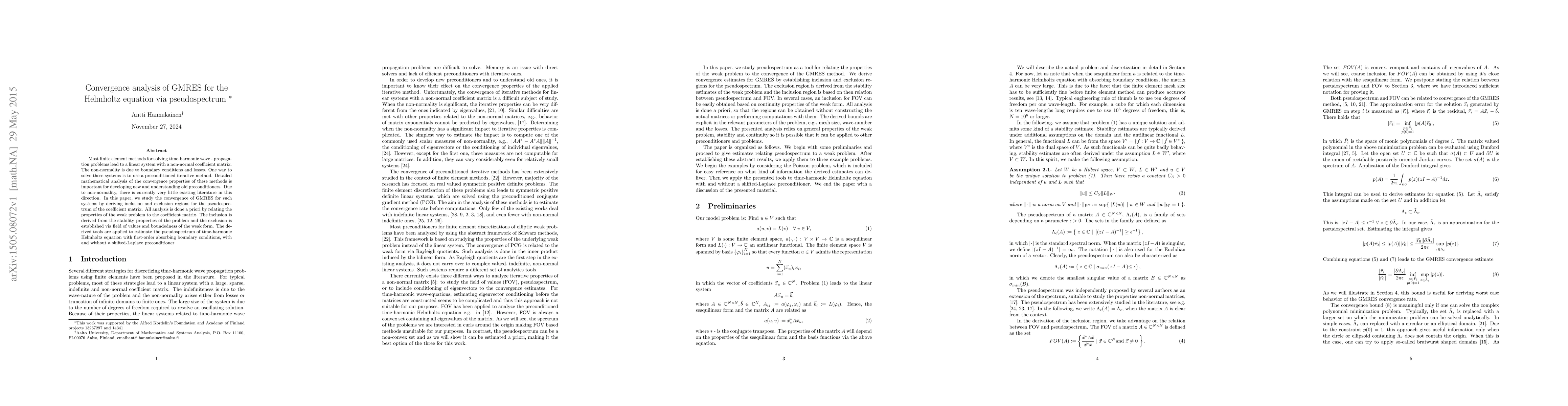 This paper analyzes the convergence of GMRES for solving linear systems arising from time-harmonic wave-propagation problems, focusing on the Helmholtz equation. It uses pseudospectrum analysis to derive inclusion and exclusion regions, providing a mathematical framework for understanding the method's convergence properties.