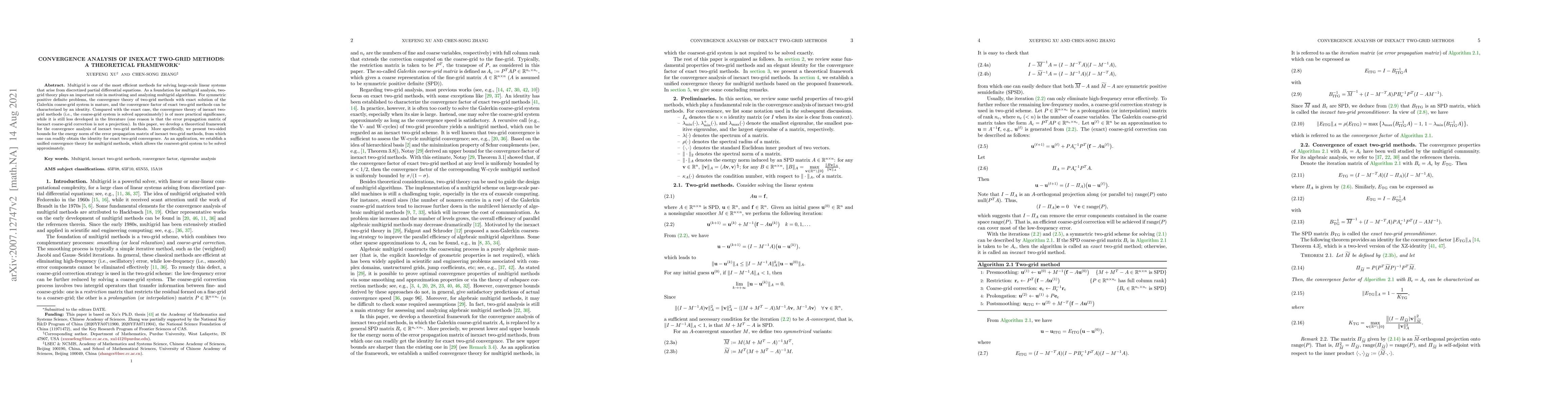 Multigrid is one of the most efficient methods for solving large-scale linear systems that arise from discretized partial differential equations. As a foundation for multigrid analysis, two-grid theory plays an important role in motivating and analyzing multigrid algorithms. For symmetric positive definite problems, the convergence theory of two-grid methods with exact solution of the Galerkin coarse-grid system is mature, and the convergence factor of exact two-grid methods can be characterized by an identity. Compared with the exact case, the convergence theory of inexact two-grid methods (i.e., the coarse-grid system is solved approximately) is of more practical significance, while it is still less developed in the literature (one reason is that the error propagation matrix of inexact coarse-grid correction is not a projection). In this paper, we develop a theoretical framework for the convergence analysis of inexact two-grid methods. More specifically, we present two-sided bounds for the energy norm of the error propagation matrix of inexact two-grid methods, from which one can readily obtain the identity for exact two-grid convergence. As an application, we establish a unified convergence theory for multigrid methods, which allows the coarsest-grid system to be solved approximately.