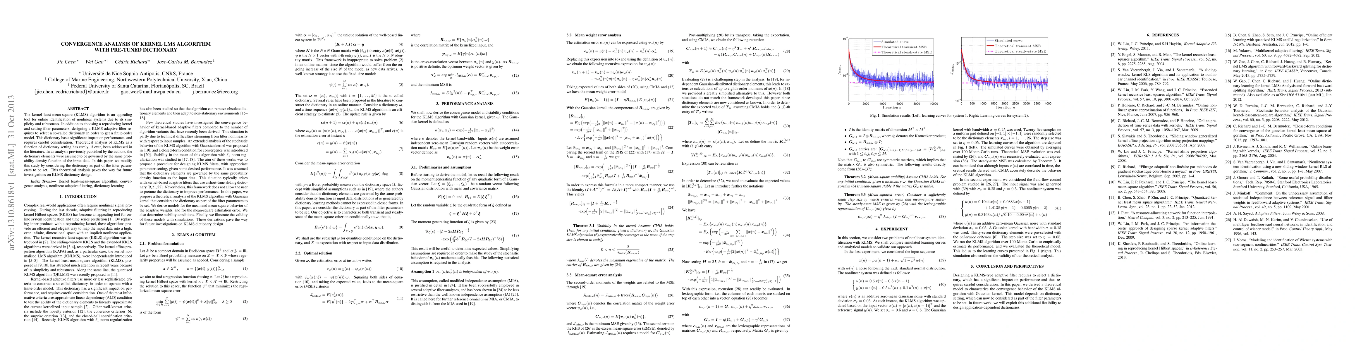 This paper investigates the convergence properties of the kernel least-mean-square (KLMS) algorithm when the dictionary is pre-tuned rather than assumed to follow the same probability density function as the input data. This theoretical analysis provides a foundation for future studies on optimizing KLMS dictionary design.