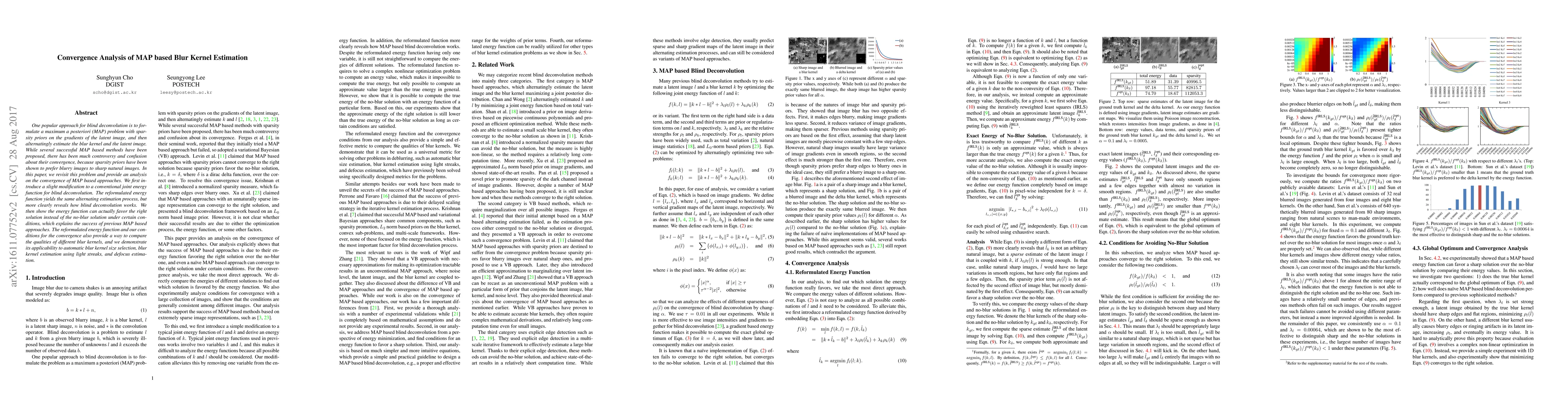 This paper analyzes the convergence of MAP-based methods for blur kernel estimation in blind deconvolution, proposing a modified joint energy function that clarifies the process and demonstrates conditions under which it favors correct solutions over blurry ones, aiding in kernel size selection and defocus estimation.