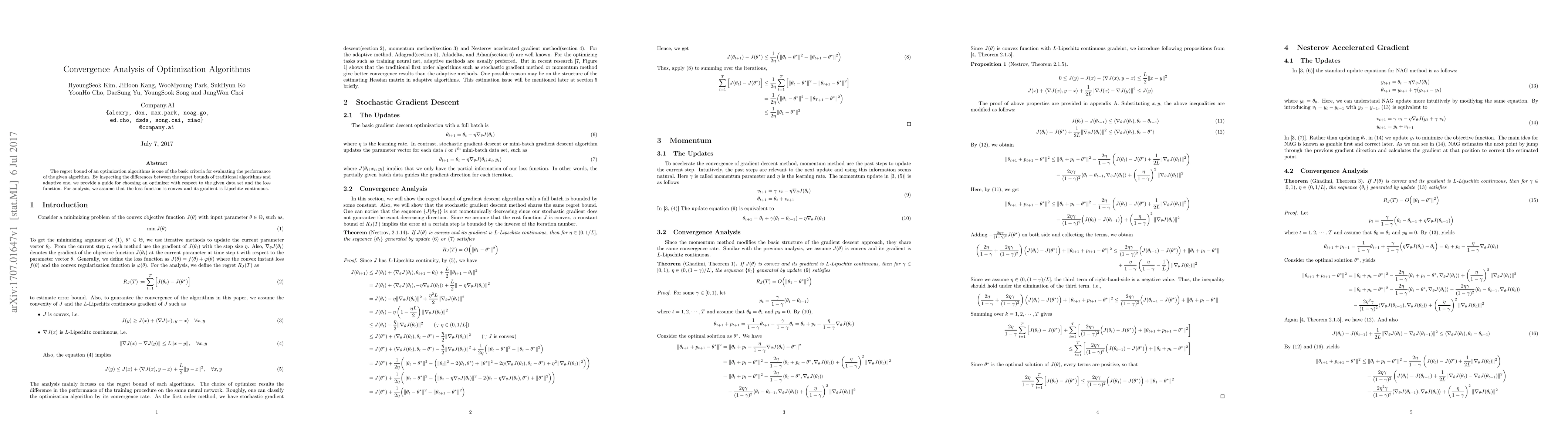 The regret bound of an optimization algorithms is one of the basic criteria for evaluating the performance of the given algorithm. By inspecting the differences between the regret bounds of traditional algorithms and adaptive one, we provide a guide for choosing an optimizer with respect to the given data set and the loss function. For analysis, we assume that the loss function is convex and its gradient is Lipschitz continuous.