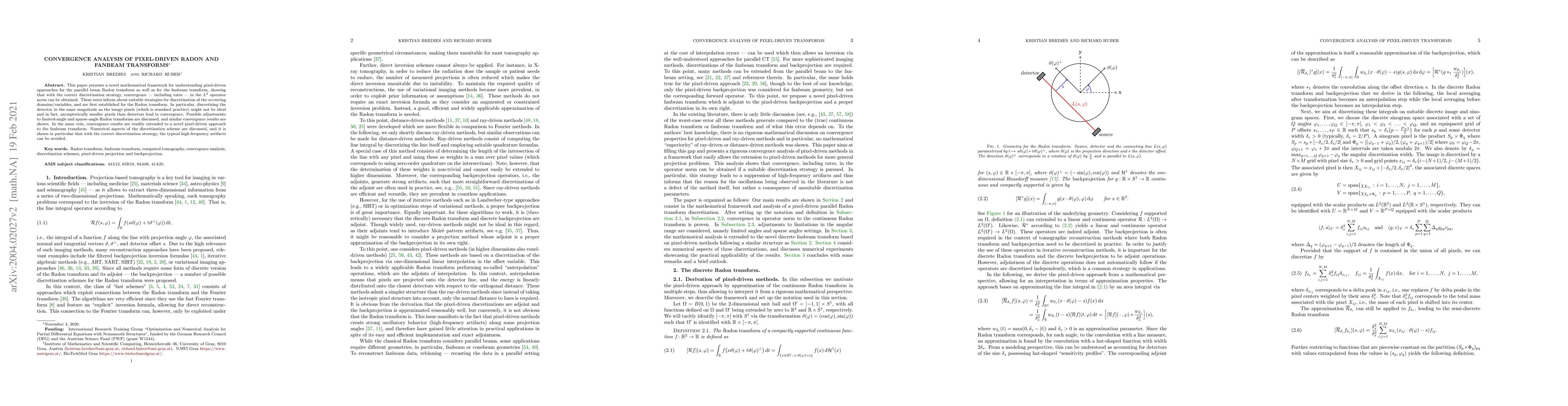This paper presents a novel mathematical framework for understanding pixel-driven approaches for the parallel beam Radon transform as well as for the fanbeam transform, showing that with the correct discretization strategy, convergence - including rates - in the $L^2$ operator norm can be obtained. These rates inform about suitable strategies for discretization of the occurring domains/variables, and are first established for the Radon transform. In particular, discretizing the detector in the same magnitude as the image pixels (which is standard practice) might not be ideal and in fact, asymptotically smaller pixels than detectors lead to convergence. Possible adjustments to limited-angle and sparse-angle Radon transforms are discussed, and similar convergence results are shown. In the same vein, convergence results are readily extended to a novel pixel-driven approach to the fanbeam transform. Numerical aspects of the discretization scheme are discussed, and it is shown in particular that with the correct discretization strategy, the typical high-frequency artifacts can be avoided.