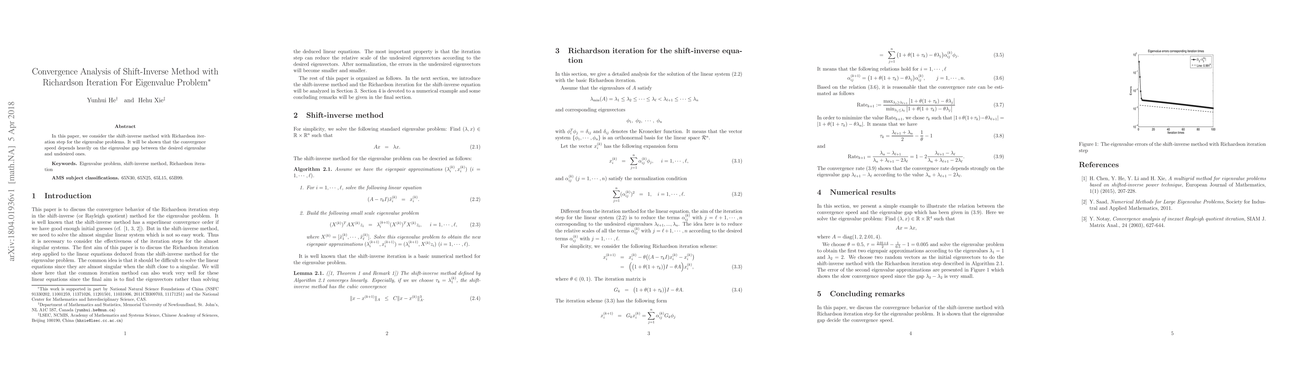 This paper analyzes the convergence of the shift-inverse method combined with Richardson iteration for solving eigenvalue problems, demonstrating that convergence speed is significantly influenced by the eigenvalue gap between the target and other eigenvalues.