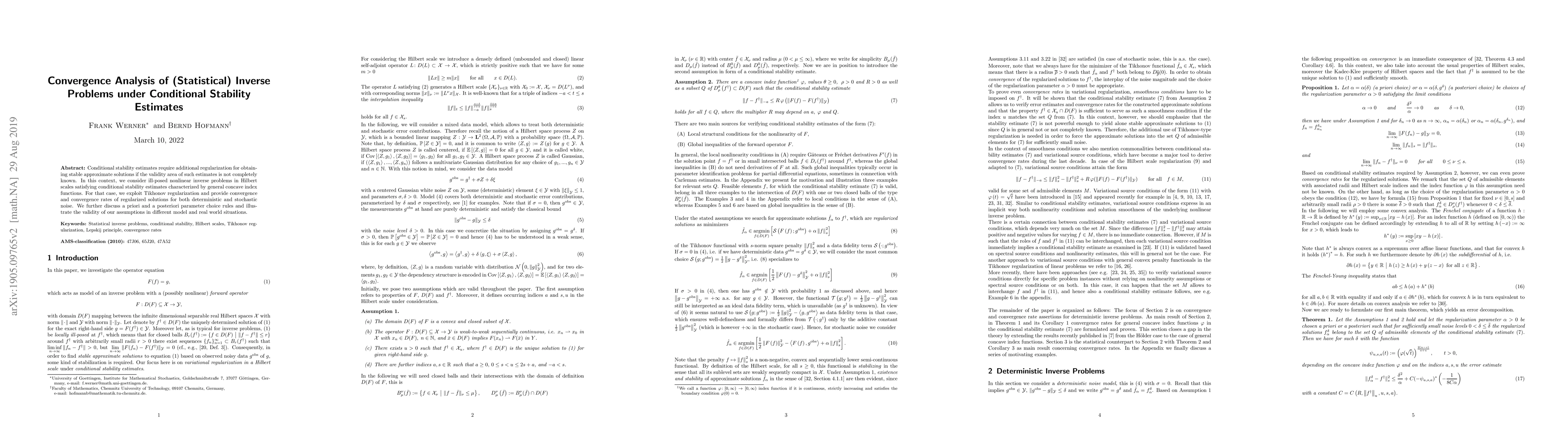 This paper analyzes the convergence of Tikhonov regularization for ill-posed nonlinear inverse problems under conditional stability estimates, providing convergence rates and discussing a priori and a posteriori parameter choice rules, validated through both model and real-world scenarios.