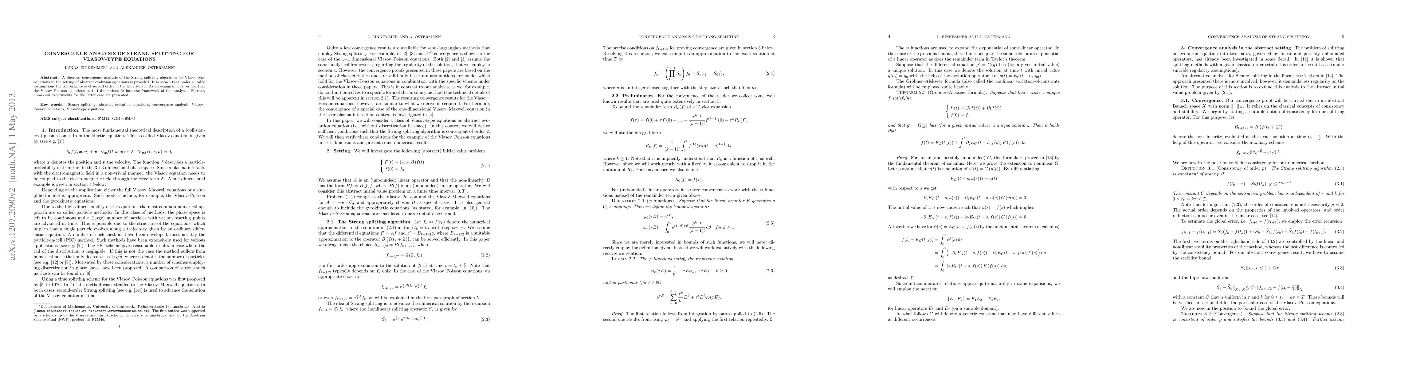 The Strang splitting algorithm for Vlasov-type equations has been shown to converge at second order in time step size under suitable assumptions, with implications for efficient numerical solutions.