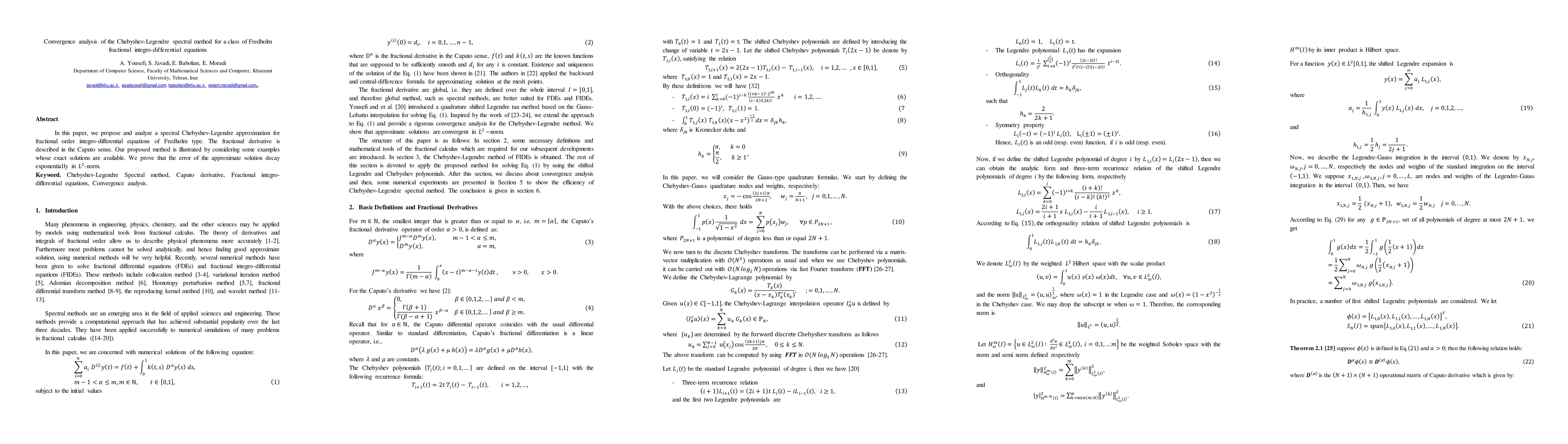 In this paper, we propose and analyze a spectral Chebyshev-Legendre approximation for fractional order integro-differential equations of Fredholm type. The fractional derivative is described in the Caputo sense. Our proposed method is illustrated by considering some examples whose exact solutions are available. We prove that the error of the approximate solution decay exponentially in L^2-norm.