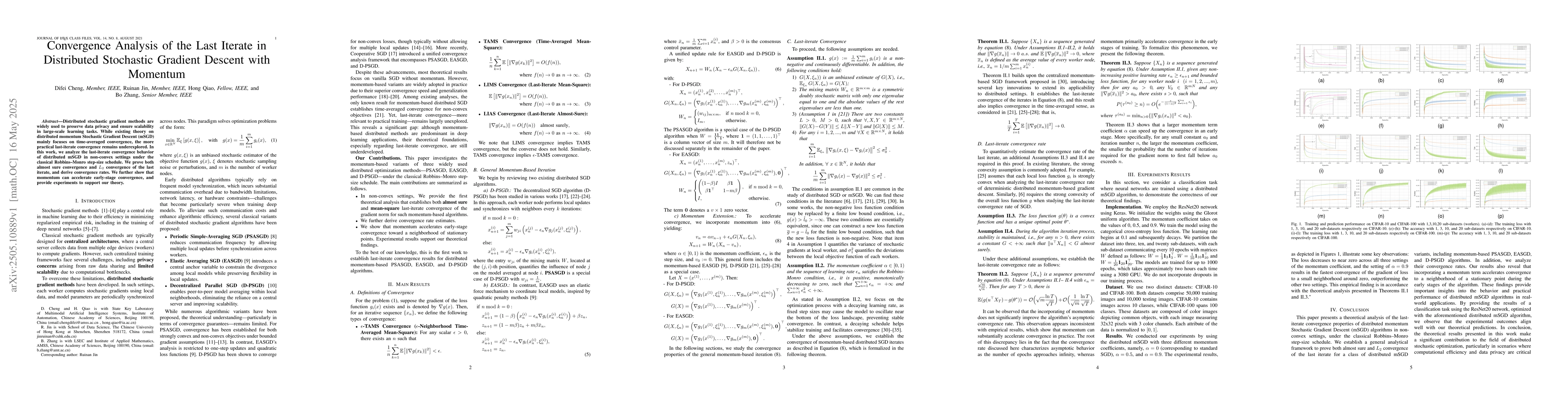 This paper analyzes convergence behavior of distributed stochastic gradient descent with momentum in non-convex settings, proving almost sure and $L_2$ convergence of the last iterate and providing experimental results to support its findings.