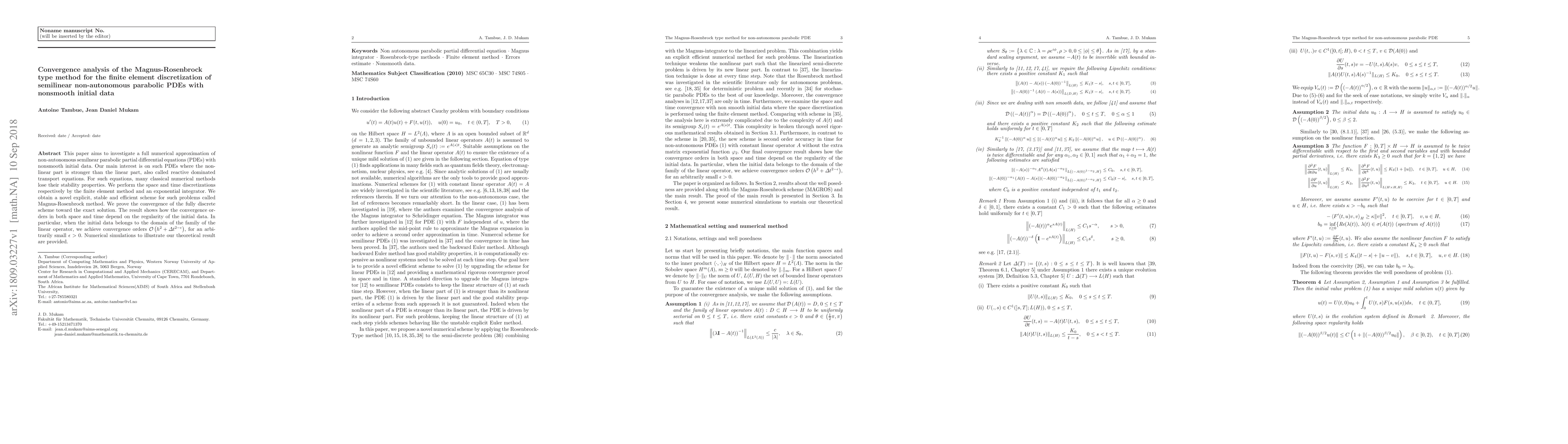 This paper aims to investigate a full numerical approximation of non-autonomous semilnear parabolic partial differential equations (PDEs) with nonsmooth initial data. Our main interest is on such PDEs where the nonlinear part is stronger than the linear part, also called reactive dominated transport equations. For such equations, many classical numerical methods lose their stability properties. We perform the space and time discretizations respectively by the finite element method and an exponential integrator. We obtain a novel explicit, stable and efficient scheme for such problems called Magnus-Rosenbrock method. We prove the convergence of the fully discrete scheme toward the exact solution. The result shows how the convergence orders in both space and time depend on the regularity of the initial data. In particular, when the initial data belongs to the domain of the family of the linear operator, we achieve convergence orders $\mathcal{O}\left(h^{2}+\Delta t^{2-\epsilon}\right)$, for an arbitrarily small $\epsilon>0$. Numerical simulations to illustrate our theoretical result are provided.