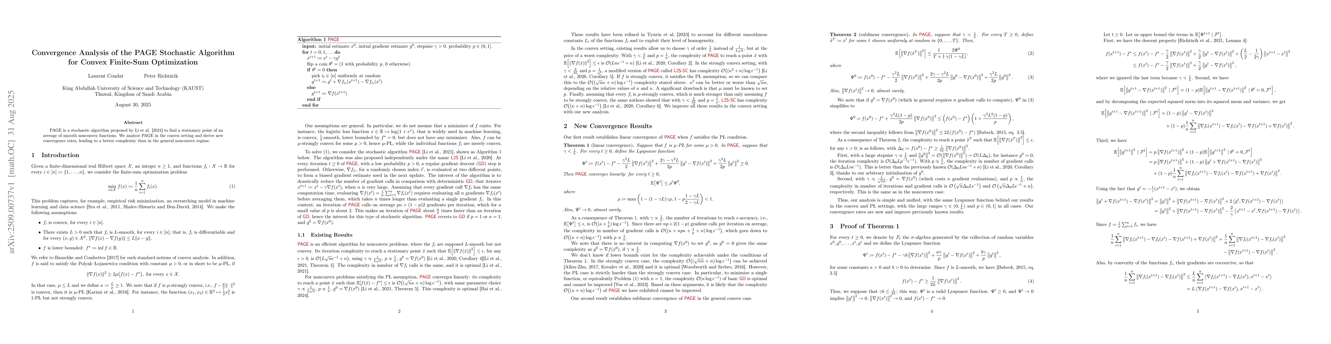 PAGE is a stochastic algorithm proposed by Li et al. [2021] to find a stationary point of an average of smooth nonconvex functions. We analyze PAGE in the convex setting and derive new convergence rates, leading to a better complexity than in the general nonconvex regime.