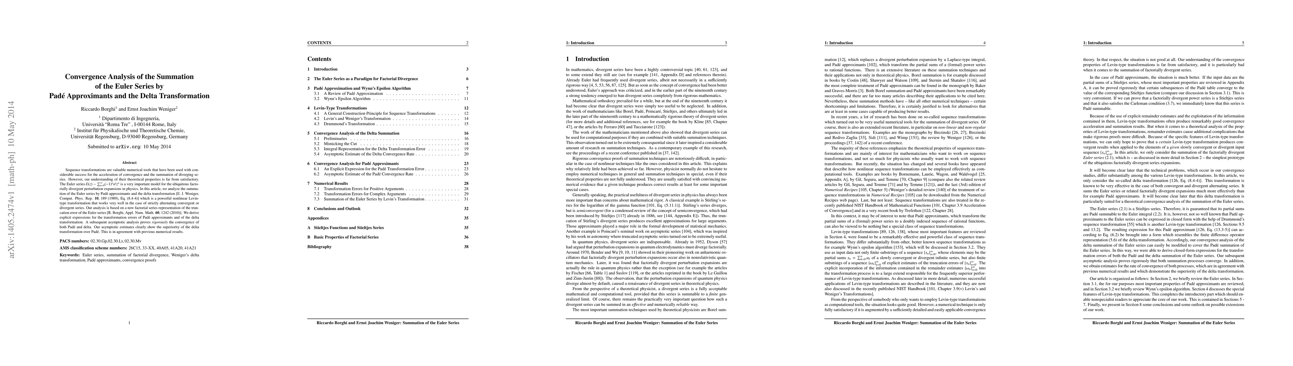 This paper analyzes the summation of the Euler series using Padé approximants and the delta transformation, deriving explicit expressions for their transformation errors. An asymptotic analysis rigorously proves the convergence of both methods, demonstrating superior performance of the delta transformation over Padé approximants.